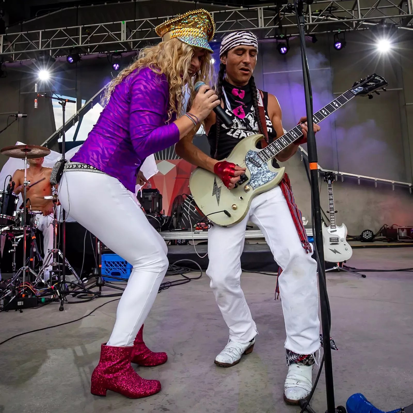 “Some of those bands started and they were called heavy metal,” Hart says. “But what they were playing wasn’t super hard, necessarily. We’re more like straight rock and roll with a little blues thrown in. When we’ve said hair metal, people say, ‘This isn’t metal.’ That’s why we moved it to glam rock, even though we have long hair.”