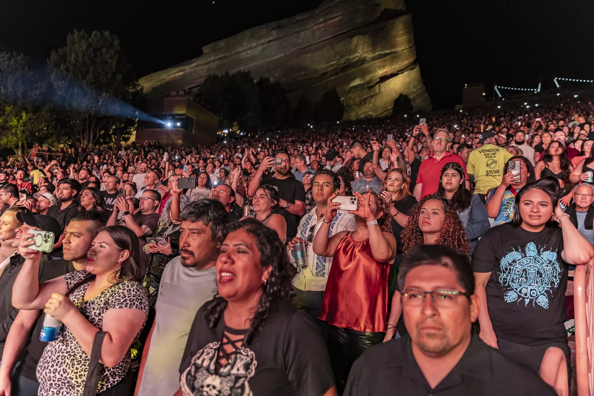 As the most successful Latin American band of all time that has sold over 45 million records worldwide, Maná continues to make history, most recently as the first Spanish-language band to be nominated for induction into the Rock and Roll Hall of Fame back in February. Members of Maná include vocalist and frontman Fher Olvera, drummer Alex González, guitarist Sergio Vallín and bassist Juan Calleros. Fans packed Red Rocks. Photography by: Brandon Johnson (@bjohnsonxar)