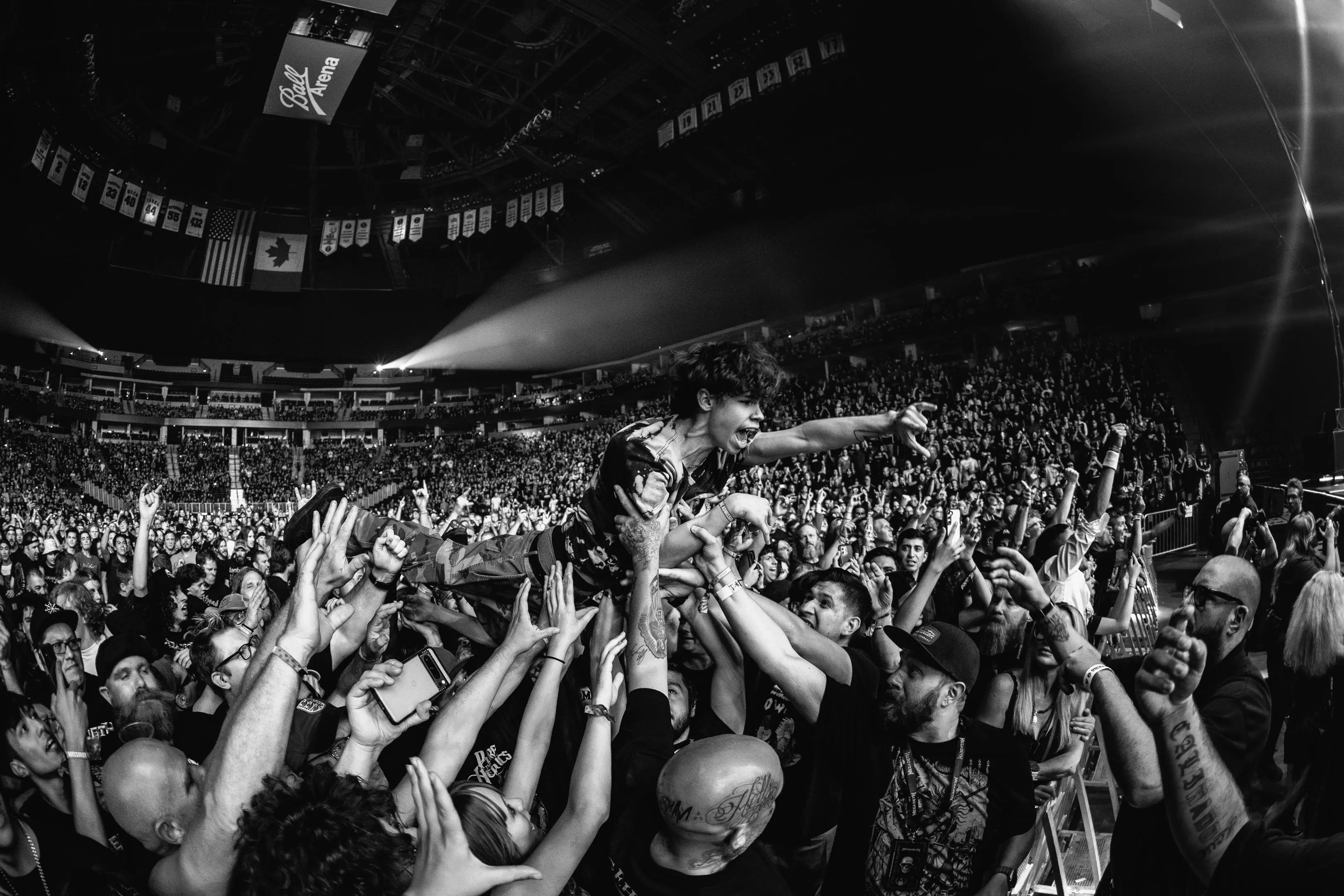 “I think that understanding your surroundings is the most important part of attending a hardcore show,” he says. “Moshing is more violent than ever, and it’s not going anywhere. It’s also a place of respect: If someone falls down, we pick them up. If you don’t want to get hit, pushed or shoved, don’t stand near the edge of the pit.”