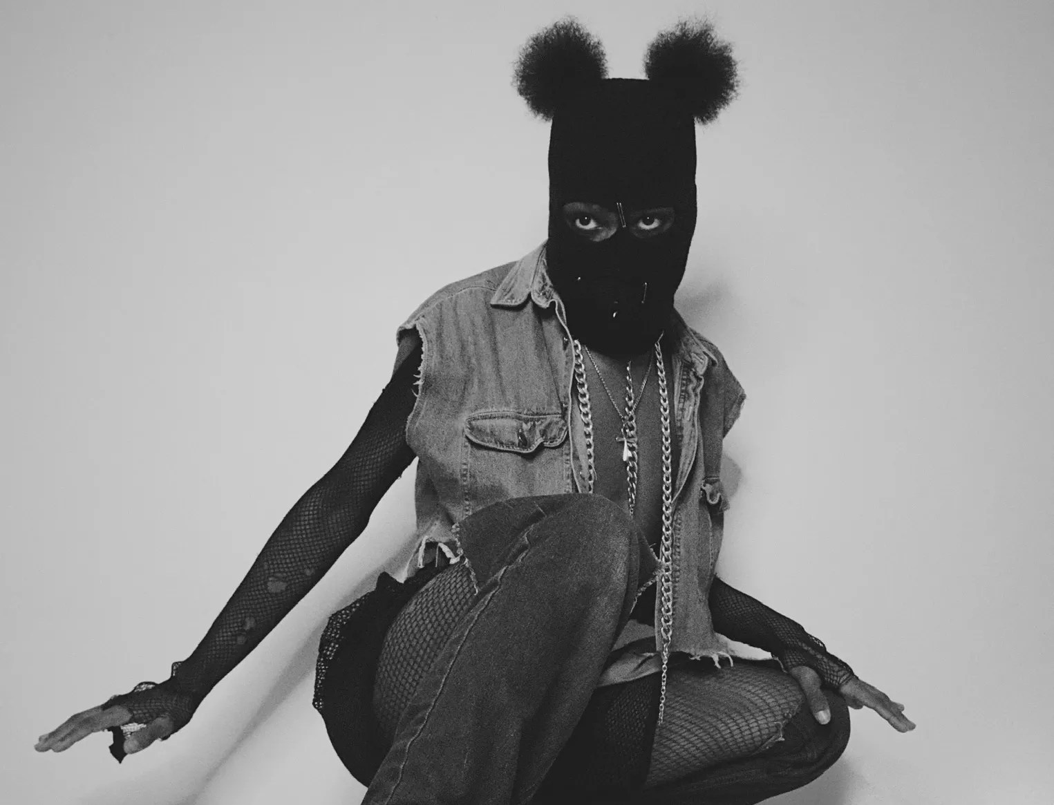 N3ptune not only had his name, but a seal of approval on his eccentrically curated, androgynous fashion so akin to that of the anti-authoritarian New York Club Kids of the ’90s, who wore handcrafted creative garments and makeup that varied from whimsical to sci-fi to grotesque. After hearing of the infamous Clubbers during Gaga interviews, N3ptune became obsessed with them. “I was so inspired,” he says. “I wrote a whole song right there, and it was called ‘Limelight,’ which was a club they went to. … They dressed so abrasively and aggressively, to the point where it made other people uncomfortable. They wanted to piss people off, and I loved that so much. I wanted to incorporate that into myself, and my great-grandmother was a seamstress. Fashion is literally in my veins — I was just never allowed to dress how I wanted to, but I’ve always known how to pick pieces.”