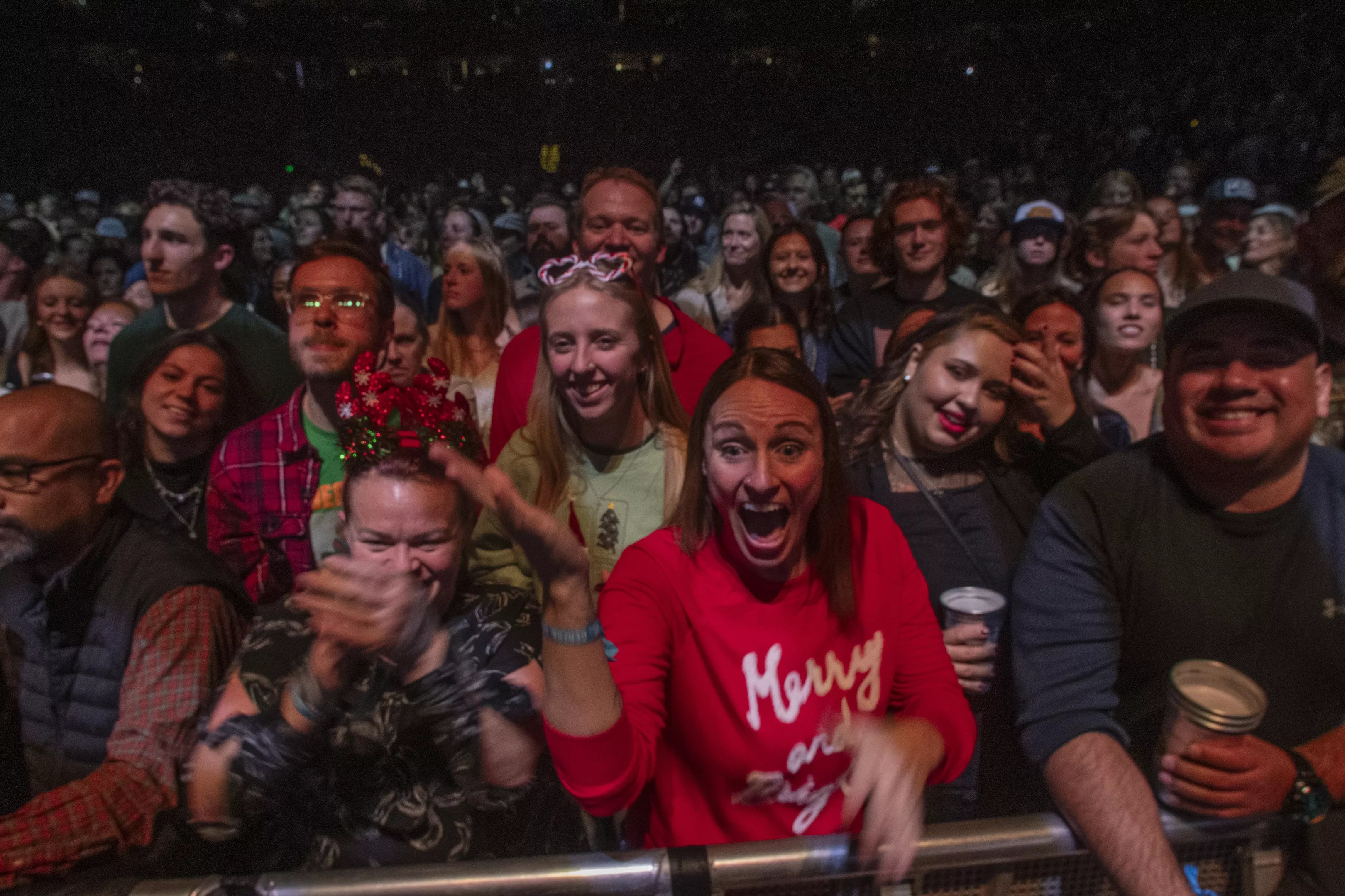 Thousands of screaming fans, some in holiday attire, filled Ball Arena as they waited for what has become an annual event: the arrival of everyone’s favorite rosy-cheeked, jolly bearded man.