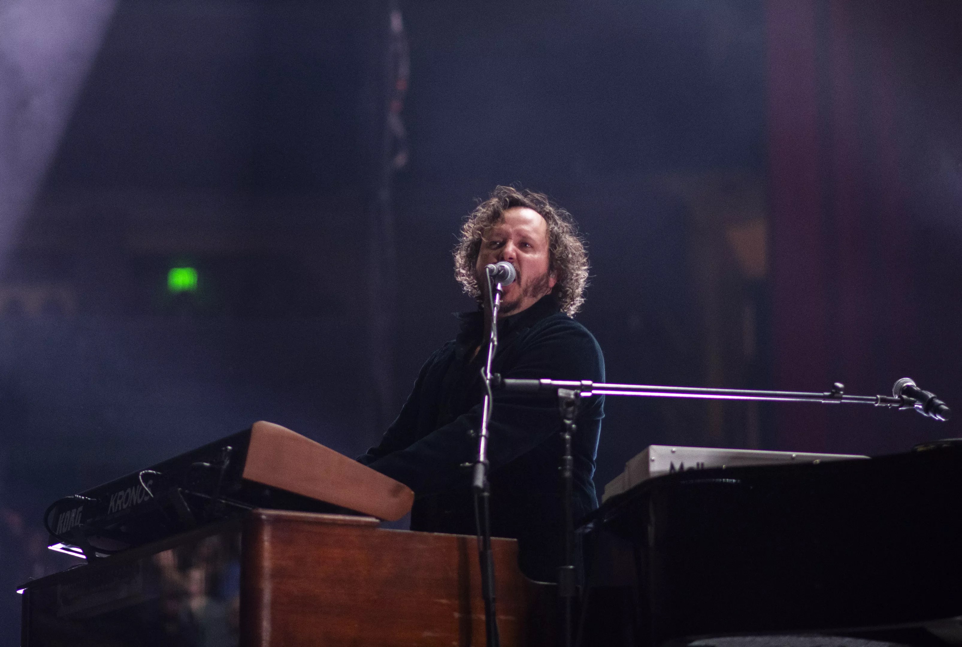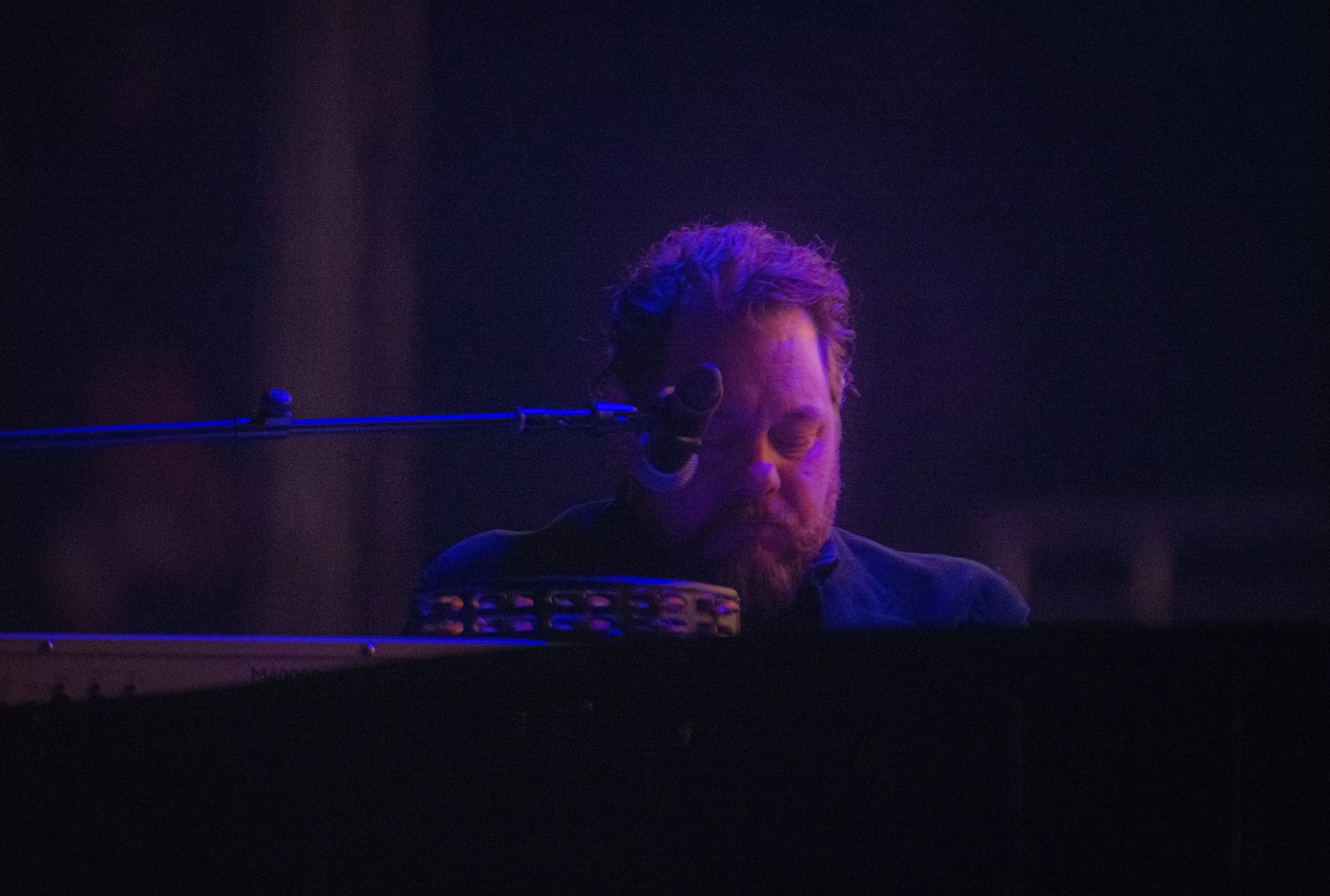 Nathaniel Rateliff appears on stage on piano to kick off the Night Sweats’ annual holiday concert.