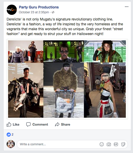 On Tuesday, October 31, we got a tip that local events organizer Party Guru was producing a Zoolander-themed Halloween party at Nativ Hotel called “Derelicte” that would include a fashion show where contestants would show off outfits inspired by people experiencing homelessness.