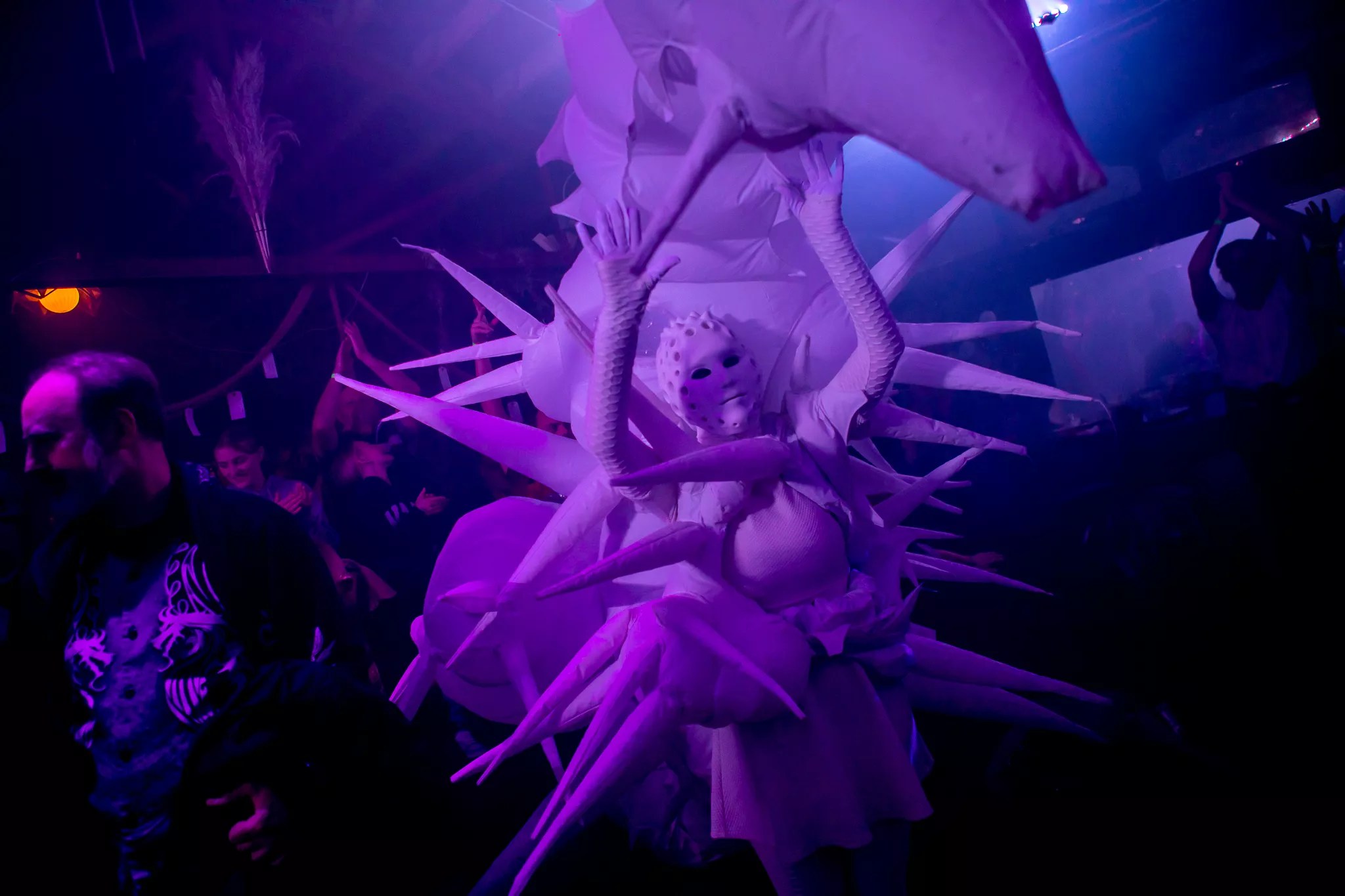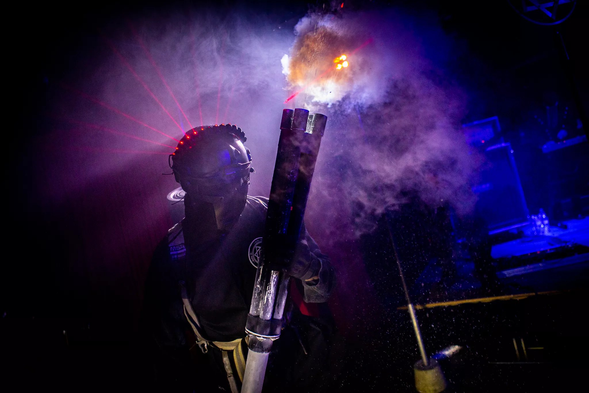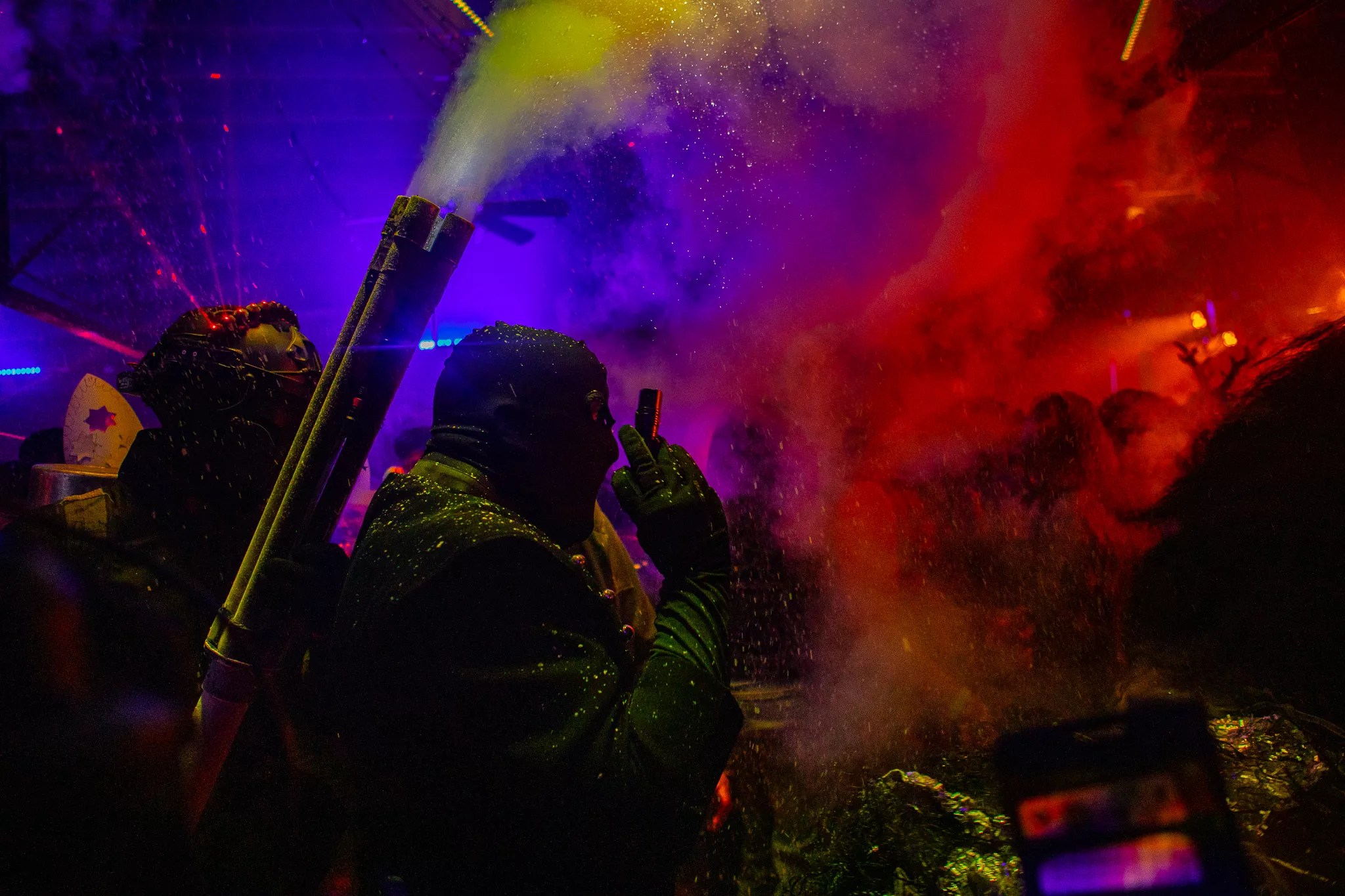 Upon arrival, audience members have the opportunity to visit an altar and get smudged before the show. The performers, who all wear masks, move throughout the crowd with drums, smoke guns, dancers and more. It’s an immersive experience rather than your ordinary concert, and follows intricate lore written by itchy-O.