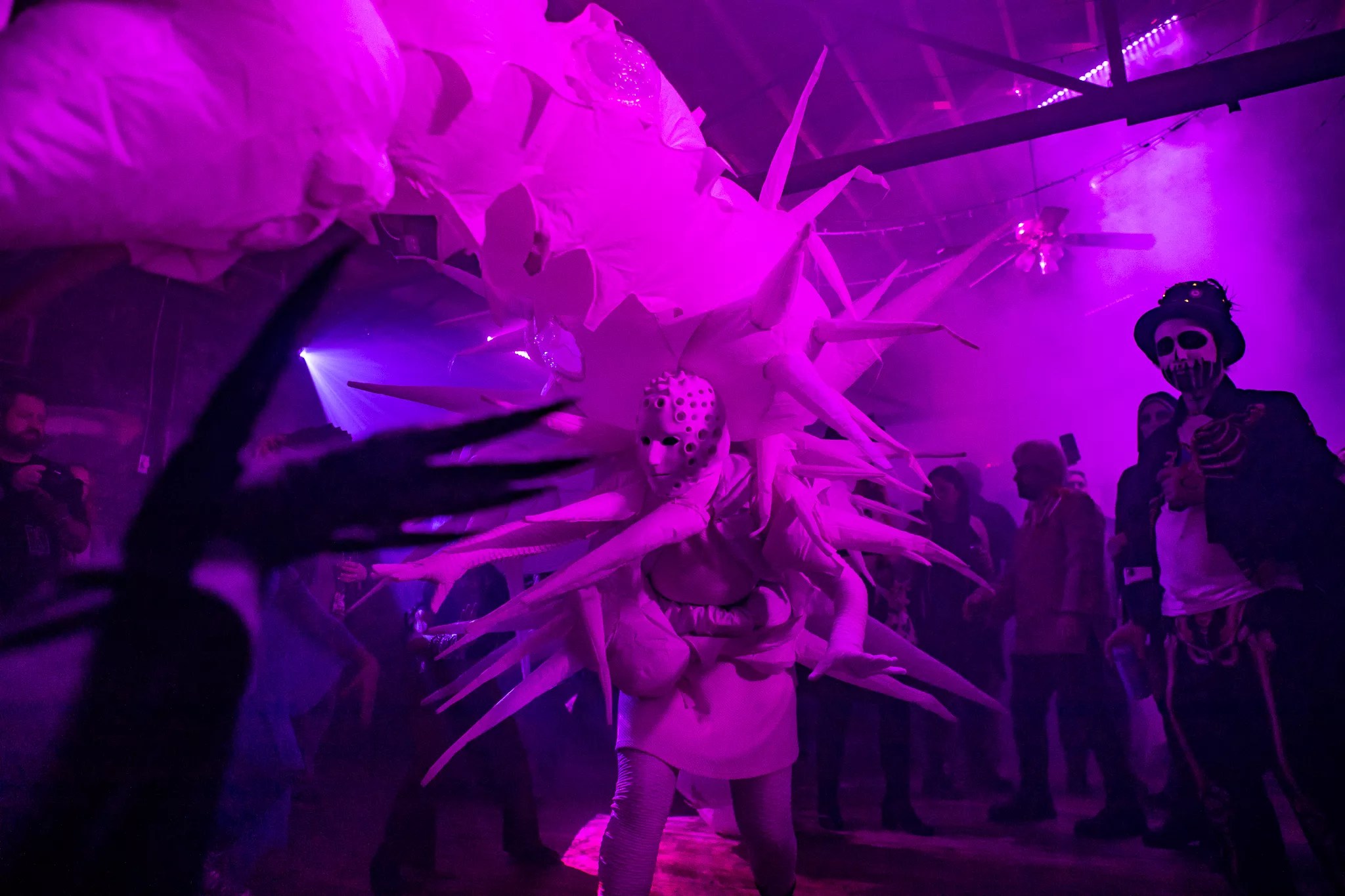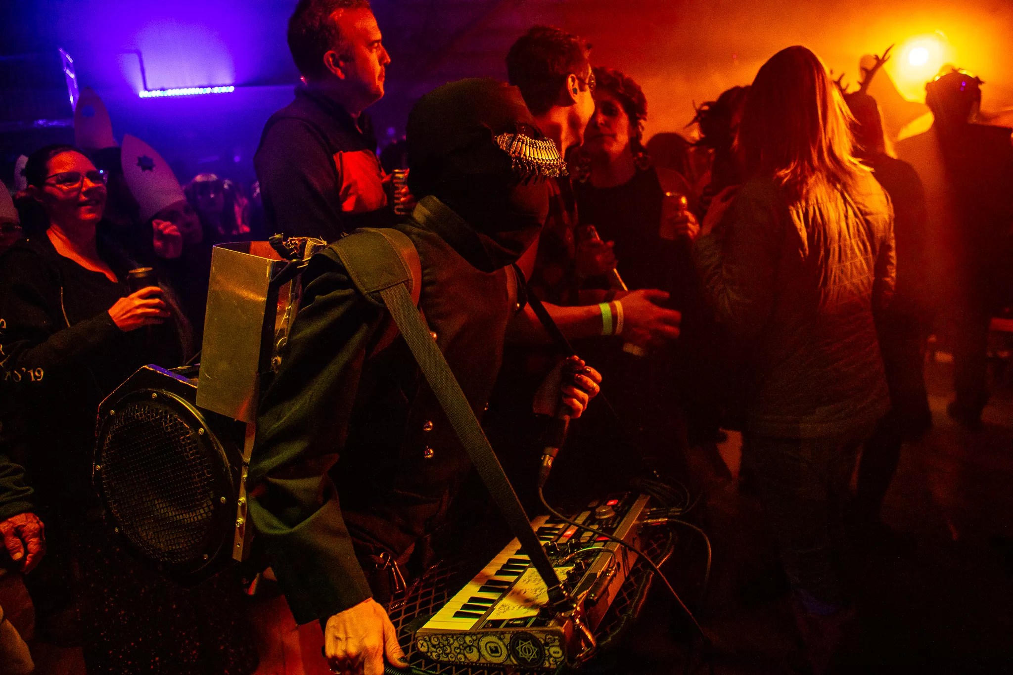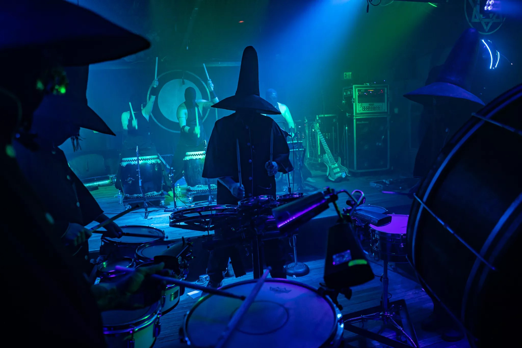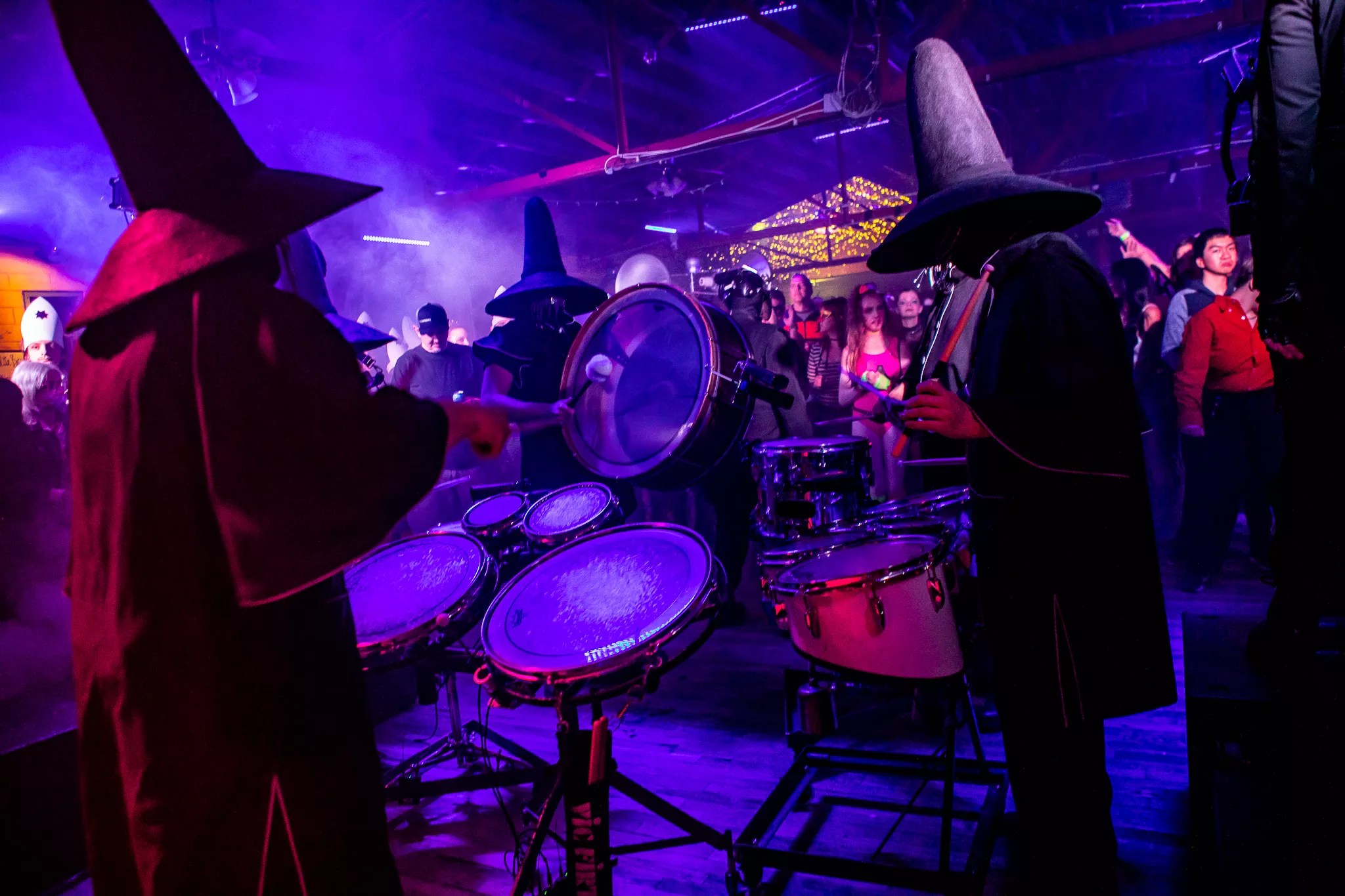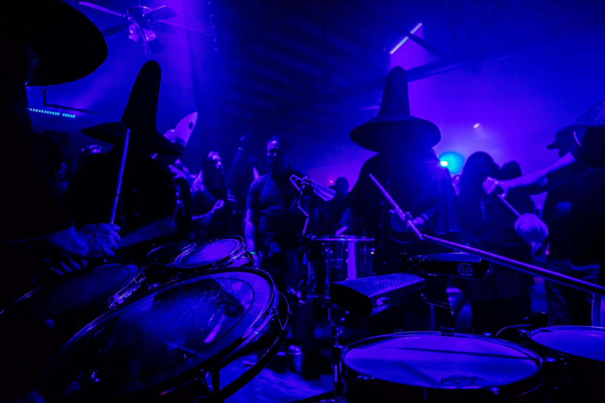 Itchy-O kicked off its five-night Hallowmass concert series at the Mercury Cafe on Friday, October 27. The event is an annual ritual for the sixty-plus-member drum troupe, which formed as a solo project in 2004. Its first Hallowmass was presented in 2015 through the Denver Center for the Performing Arts’ Off-Center program, and it’s been a Denver tradition ever since.