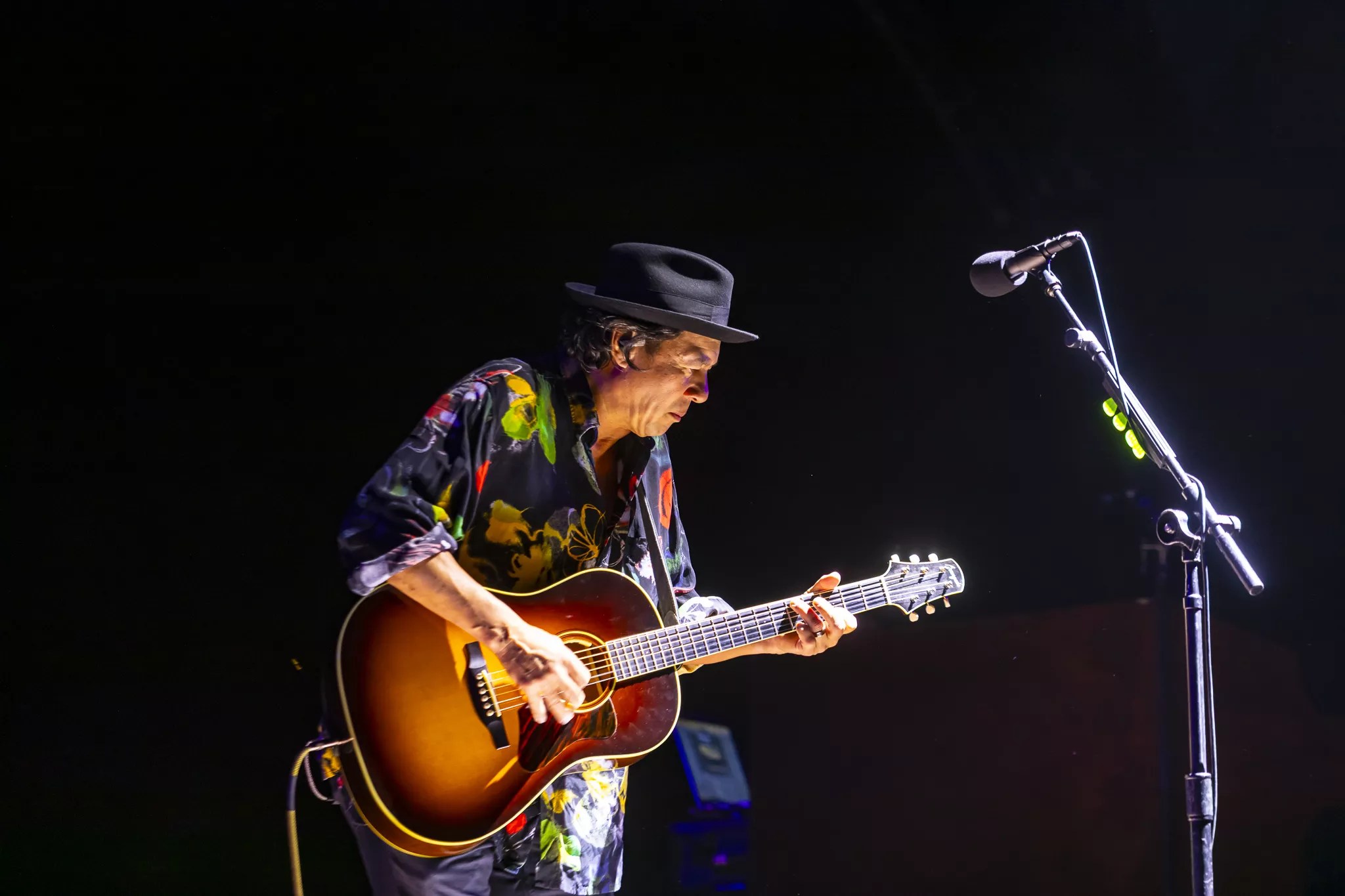 His band’s setlist includes covers of The Beatles’ “Slow Down” and Bob Dylan’s “Like a Rolling Stone”, which fans enthusiastically sing along to.