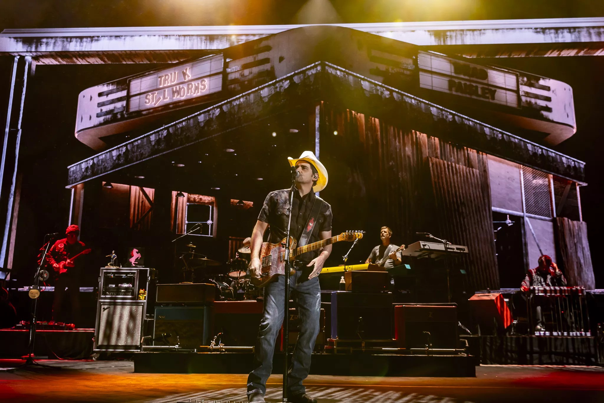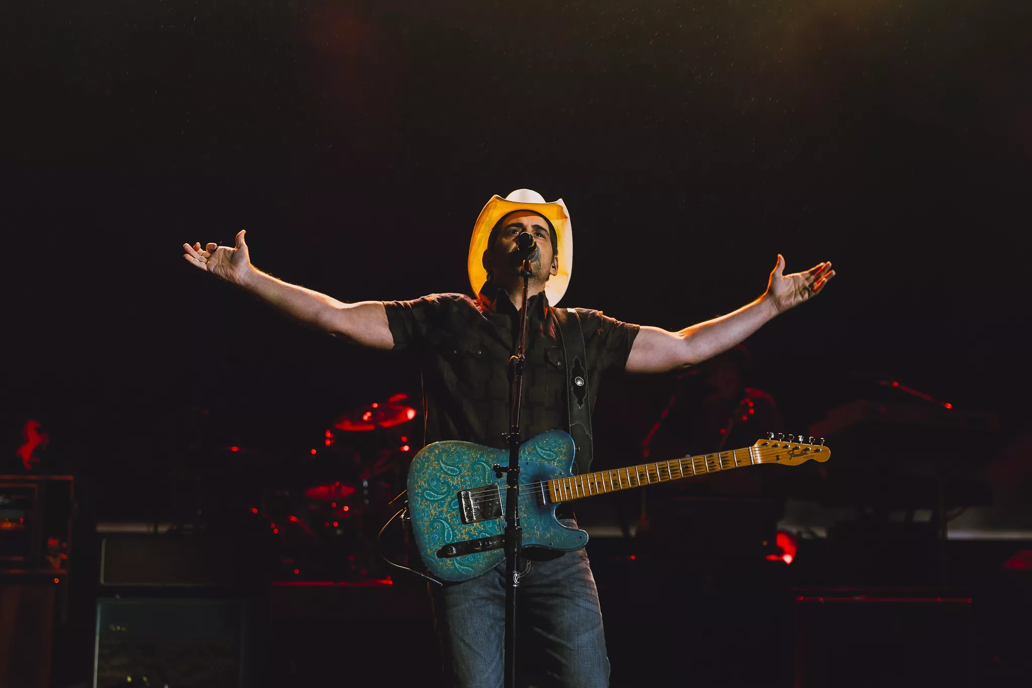 Brad Paisley made his Red Rocks debut on May 24, and he didn’t let the rain stop him from bringing his country hits to the iconic venue. Fans showed up and out to the sold-out show, which is the third stop on his Truck Still Works Tour. Walker Hayes and Avery Anna opened the show, before Paisley played a set that kicked off with “Truck Still Works” and closed with “Mud on the Tires.” Hayes joined Paisley for “I’m Still a Guy,” while Anna stepped up for “Whiskey Lullaby.”