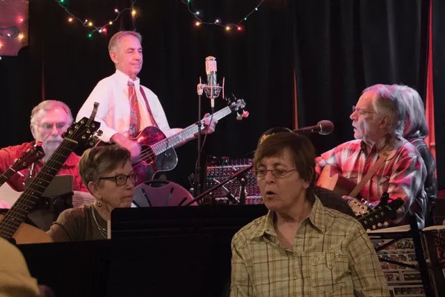 “I’m the least skilled in the group by far,” she says. “I just showed up and got a very warm welcome. It’s heartwarming they are so open to someone like me. That’s what music is all about.”