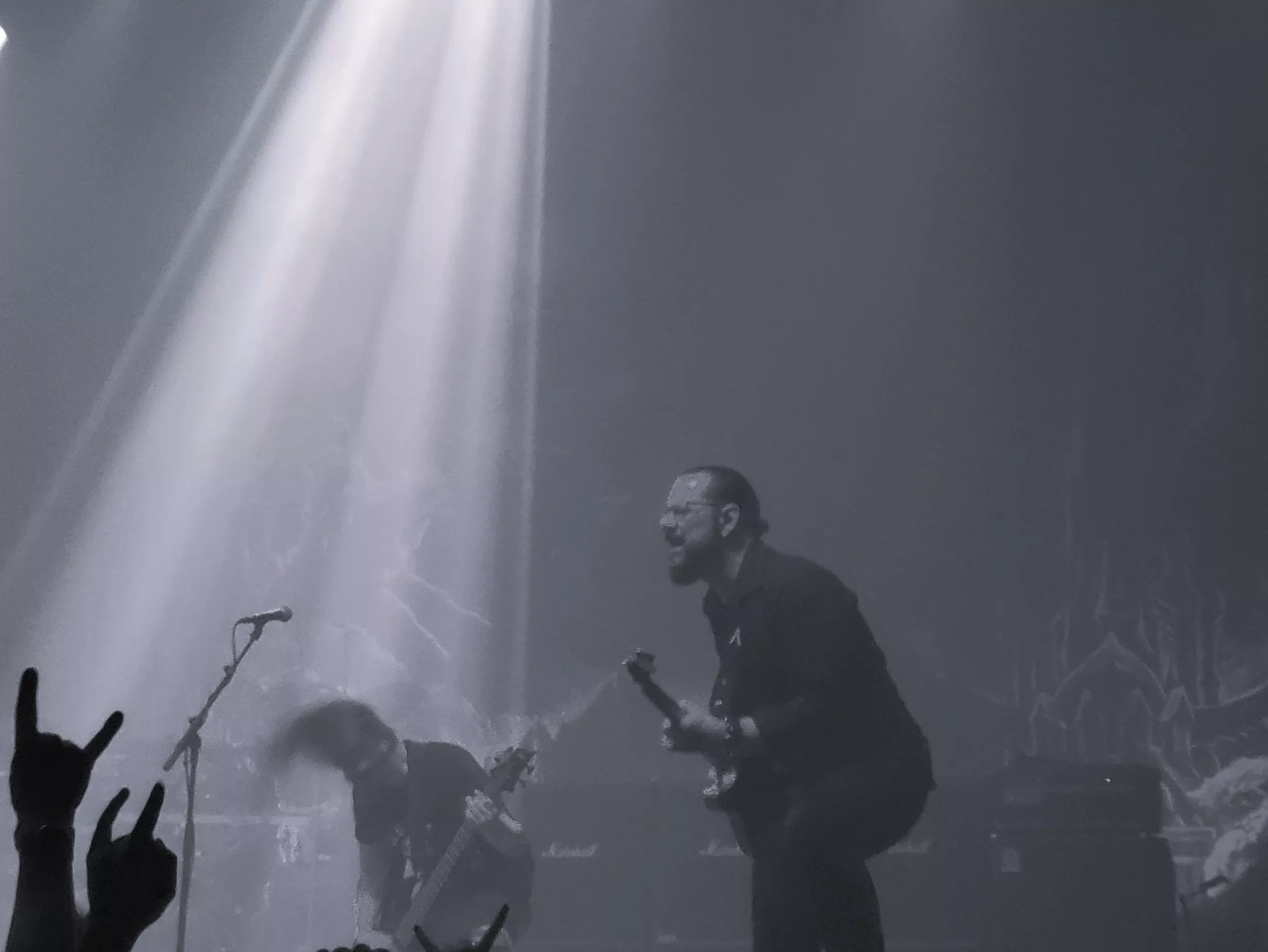 The concrete concert hall steadily filled with anticipation and spectators as opener Wayfarer took the stage. Bathed in a blood-red glow, amps adorned with cattle skulls and bull horns, the hometown heroes blasted into an hour-long set, during which vocalist-guitarist Shane McCarthy, bassist-vocalist Jamie Hansen, guitarist Joe Strong-Truscelli and drummer Isaac Faulk pulled from their impressive catalog, including the latest album, American Gothic (2023).