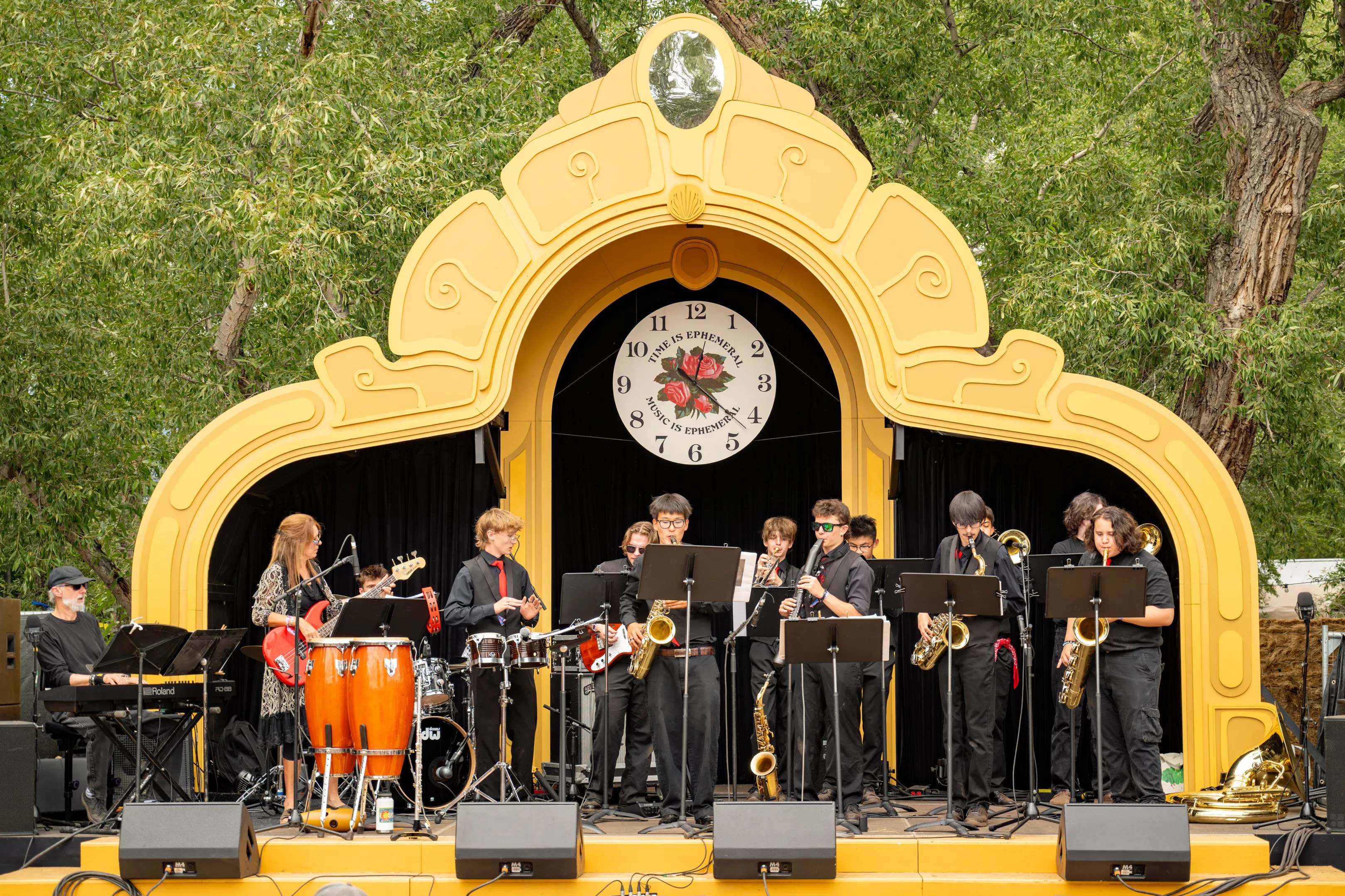 Biafra christened the collab as the “greatest fucking moment of my life with my favorite fucking band of all time.” His endearing hyperbolic prose was on full display all weekend, as he hopped across the festival’s three stages, spinning records and sharing a spoken-word set dressed in a foam Pope mitre and “Donald Trump Hates Me” T-shirt to kick off Sunday. The Buena Vista High School Red Hots Jazz Band played on the Timeland stage. Ross Jones