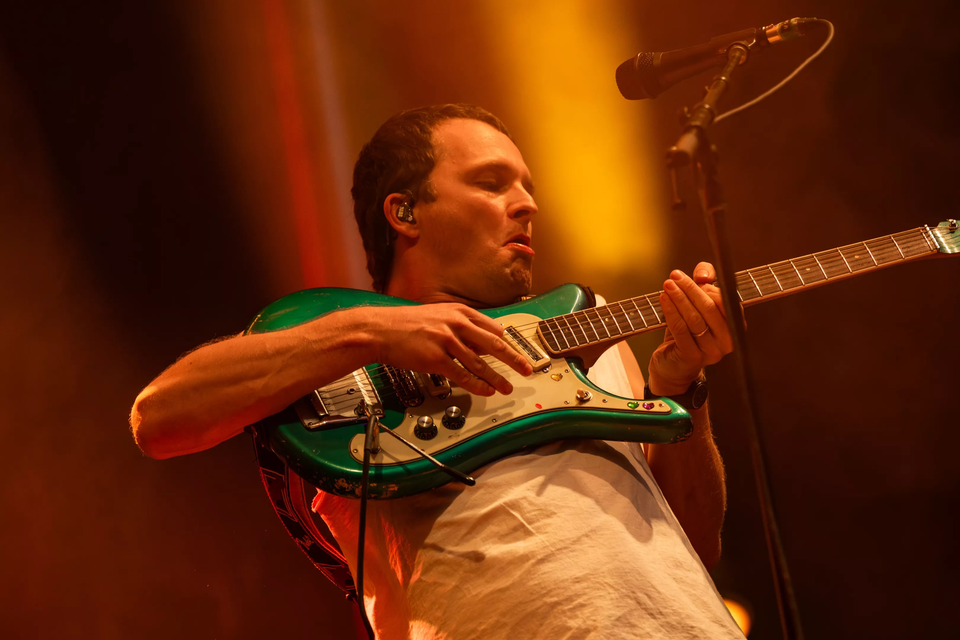 Stu Mackenzie licking his microphone.