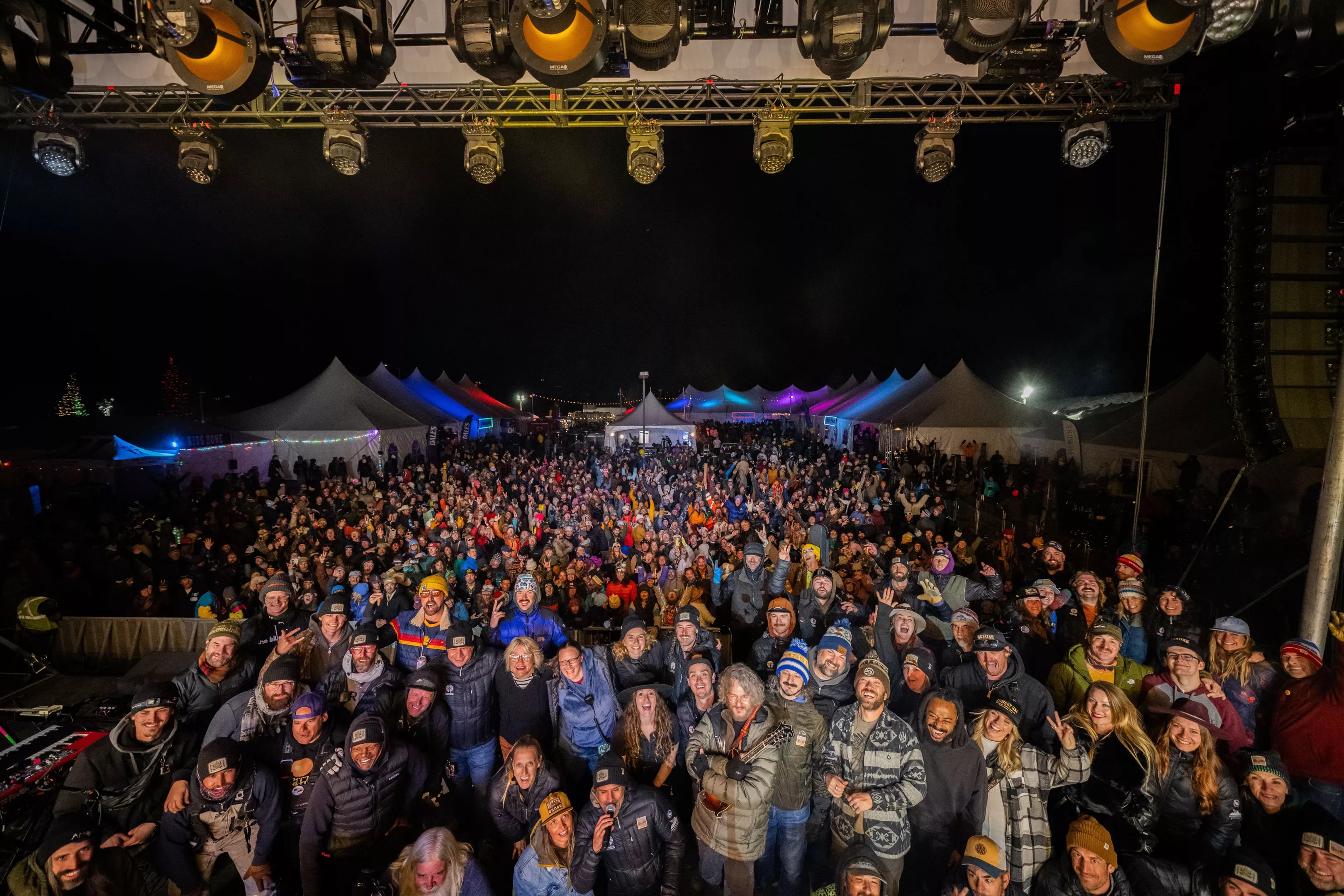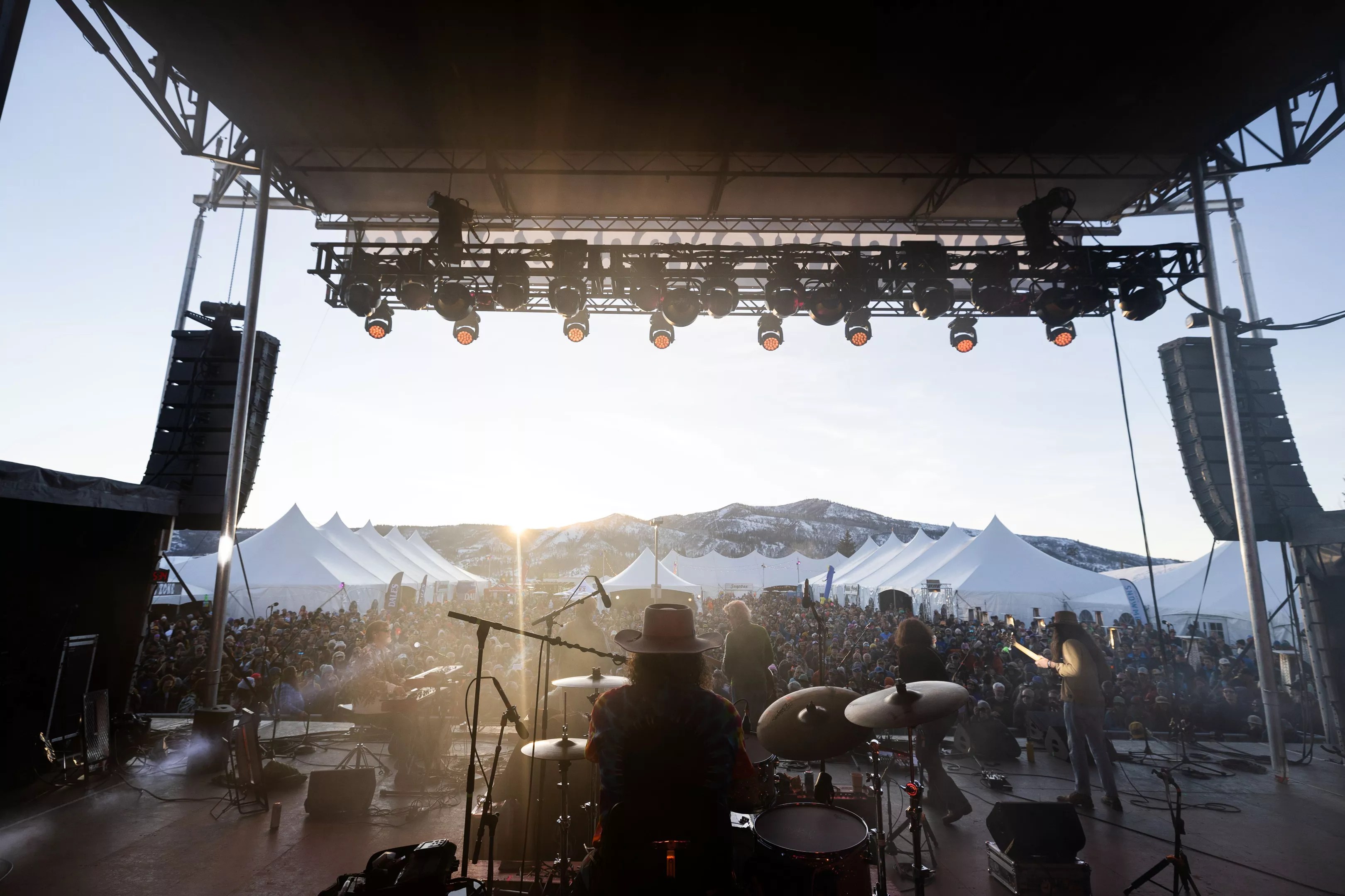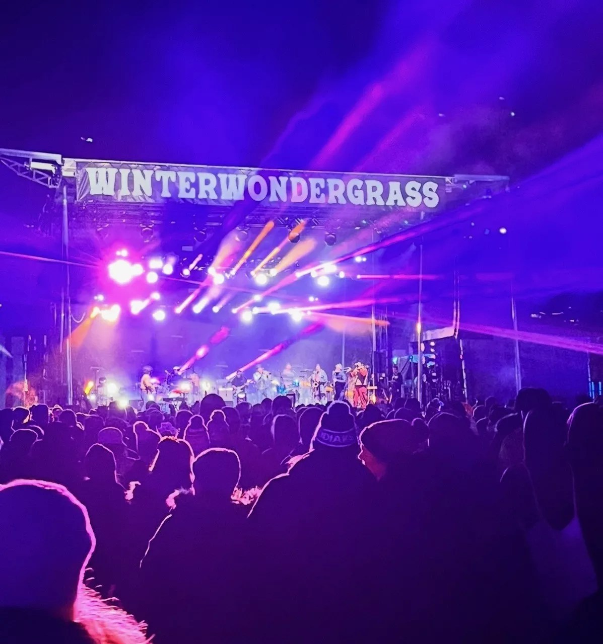 Pickin’ on the Dead looking out at WinterWonderGrass 2025 Steamboat.