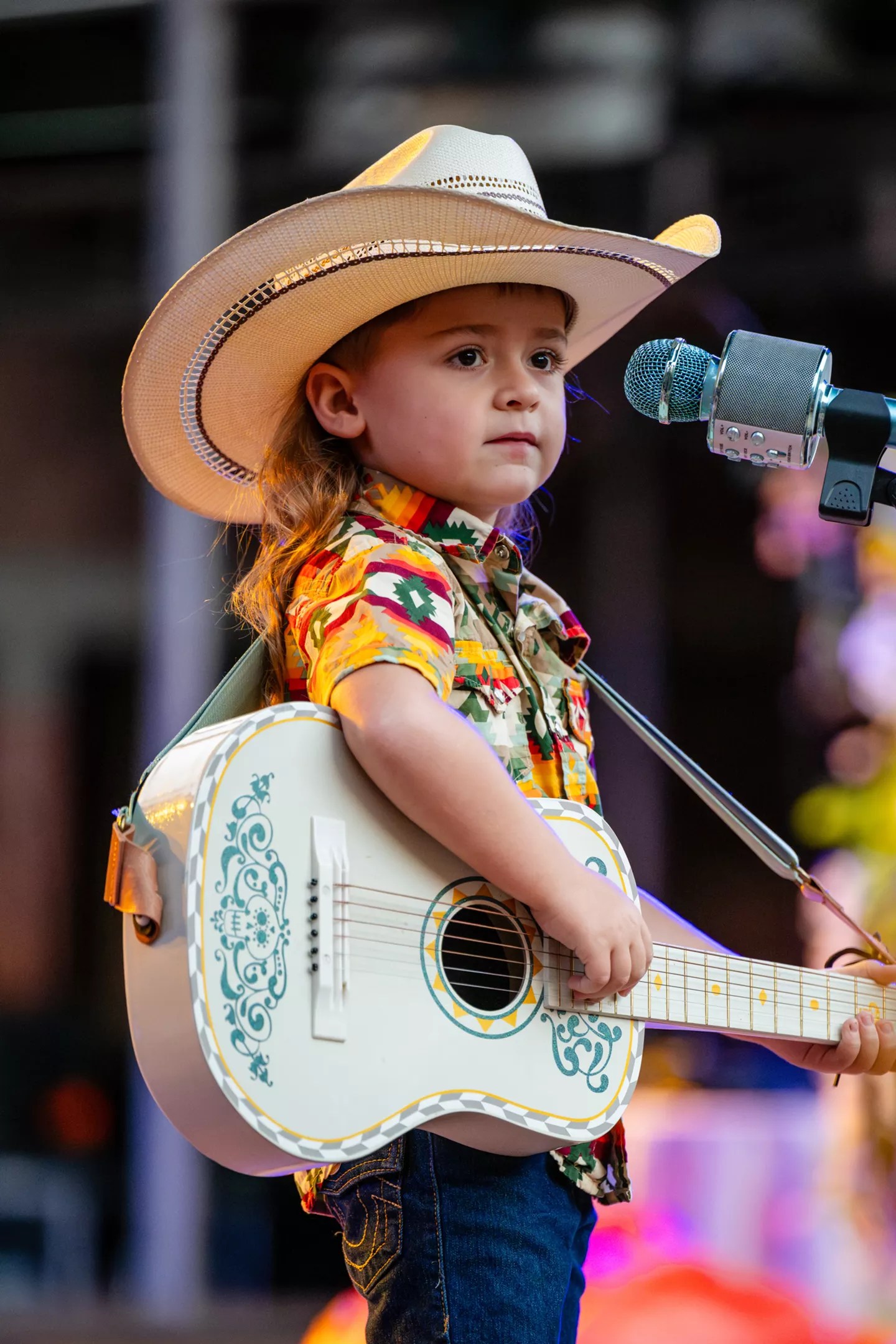 She introduced this young man as her new guitar player and asked him if he’d like to rejoin his mother backstage, to which he declined.