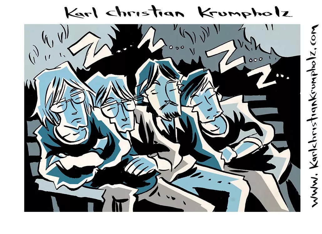 Oliver Mueller: “Since it was a foggy London evening, our goal was to stay out all night partying, only to sleep once we’d boarded our flight home. After a quick train ride, we arrived in a city that was quiet as a mouse. Every pub was closed. The only other people we saw were guards and some wandering teenagers on designer drugs. Karl Christian Krumpholz Midnight approached, and we’d spent hours trekking a city with no open bars and no public restrooms, though Dave had managed to sneak his way into a five-star hotel. The facilities there made Donald Trump’s bathroom look like a Midwest gas station porta-potty. Karl Christian Krumpholz