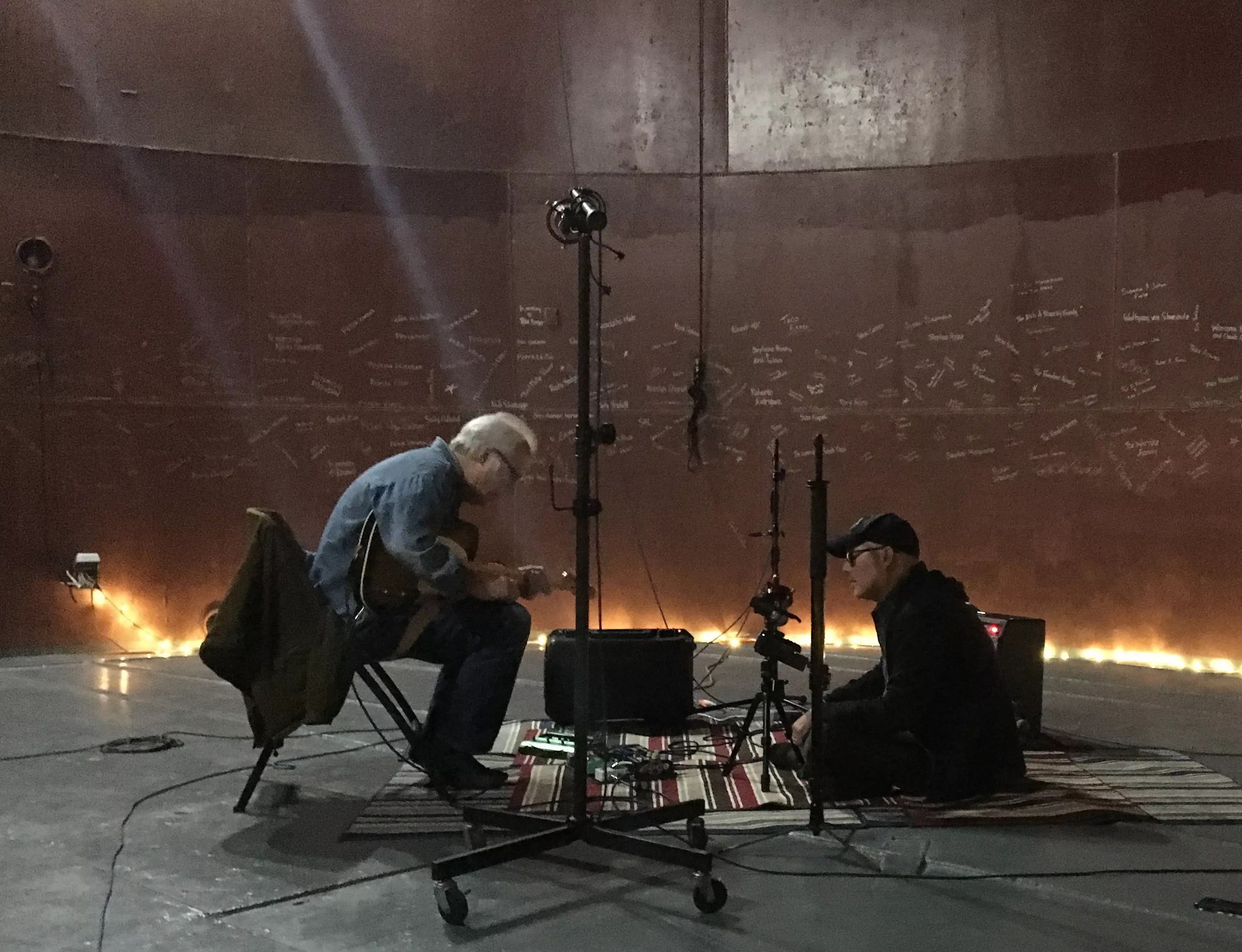 Guitarist Bill Frisell and filmmaker Bill Morrison inside the Tank.