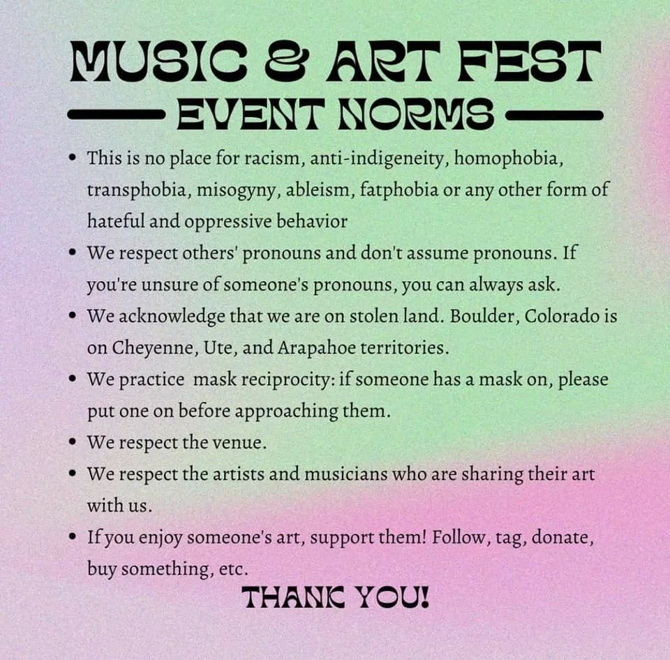 The collective created a set of norms/codes of conduct to ensure safety and inclusivity at their events.