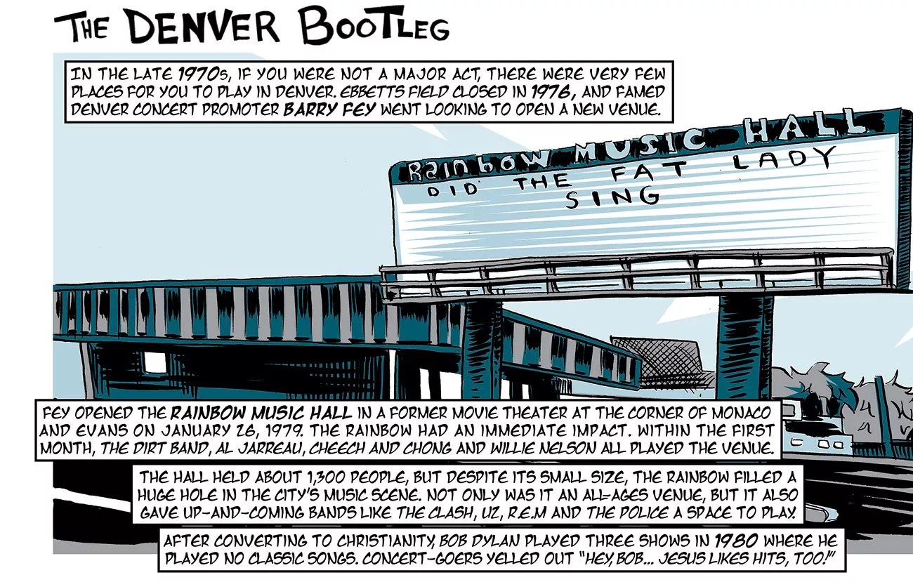 Editor’s Note: The Denver Bootleg is a series chronicling the history of local music venues by longtime Denver cartoonist Karl Christian Krumpholz. Visit Krumpholz’s website to see more of his work.