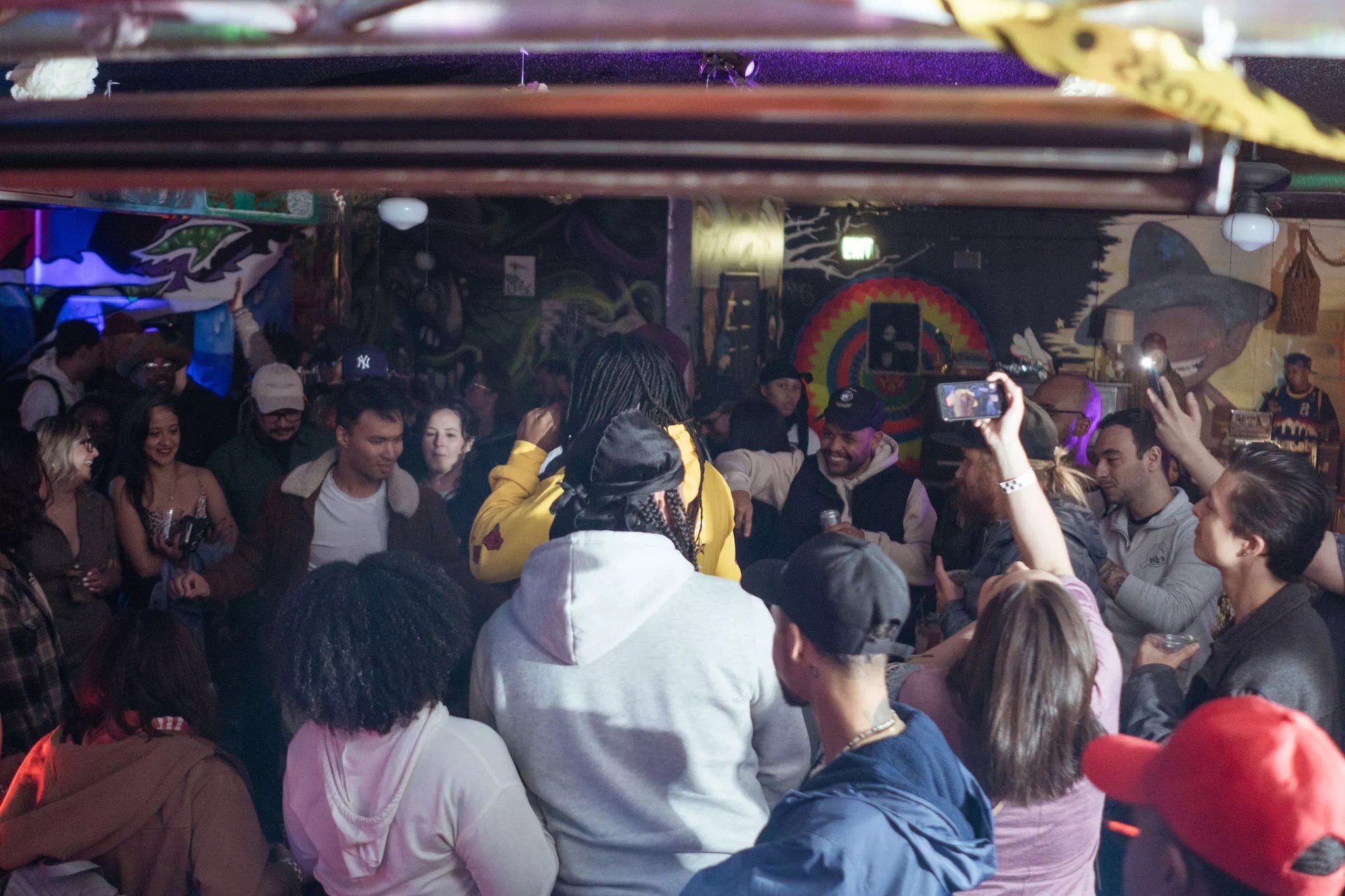 “I feel like when you go to the club, or when you go to a show, you bring a certain ego with you. You dress a certain way, you present yourself a certain way. But when you’re at a house party, you’re with your people, and you’re really comfortable. That’s the kind of atmosphere that we wanted to create for the artists and attendees,” says O’Sullivan. “Because we’re a house party…we can’t just roll up into any venue and make it work. That limits us a bit, but I’d like to find four or five venues that we can bounce between so that each show has a little bit of a different vibe.”