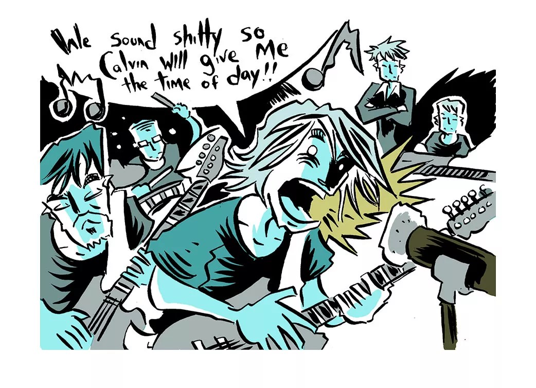 “So we recorded with him in Olympia. When we were doing the vocals to our song ‘We Sound Shitty So Spin Will Like Us,’ I ad-libbed: ‘We sound shitty so Calvin will give me the time of day.’ After the song, I offered to re-record the vocals, but he just shook his head, crossed his arms, and said in his Sigma-bass monotone, ‘It’s all rock and roll, baby.’ We ribbed him for being a major icon of lo-fi music, and he ribbed us right back.”