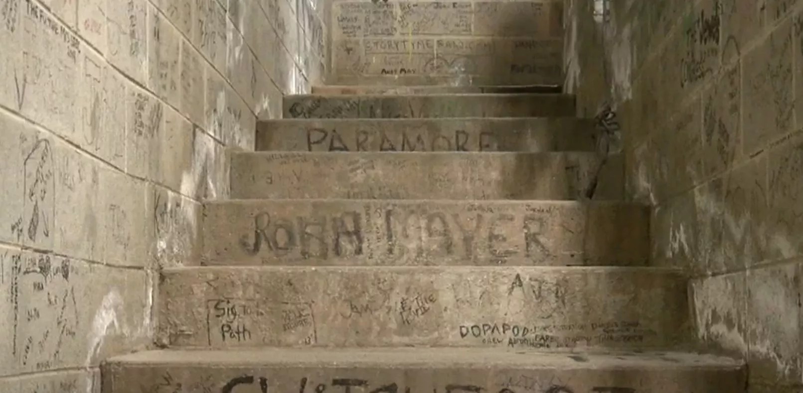It’s probably one of the worst-kept secrets of Red Rocks — that there’s a service tunnel backstage, and pop-culture famous folks from the last fifty years-plus have taken to writing on the walls, sometimes just signing their names, other times leaving messages, even responding to the messages of the stars that came before them, marker in hand.
