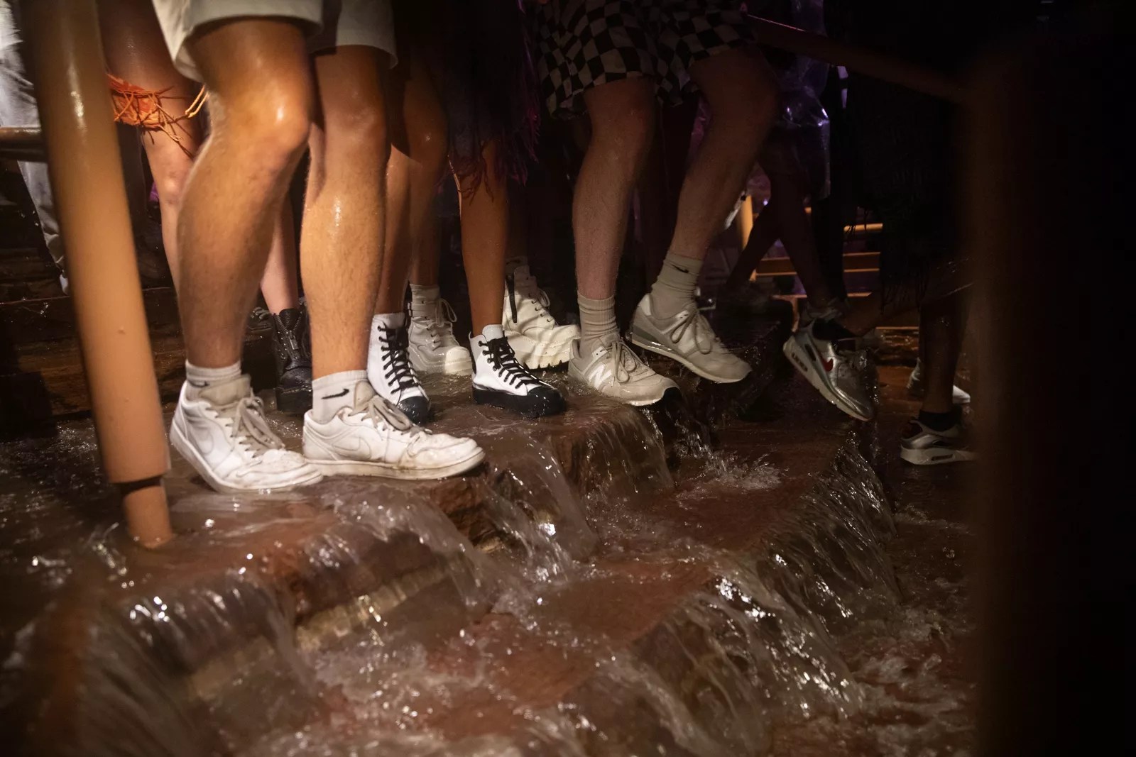 Fans (and water) started flooding out of the amphitheater as they got pelted with rain and small hail.