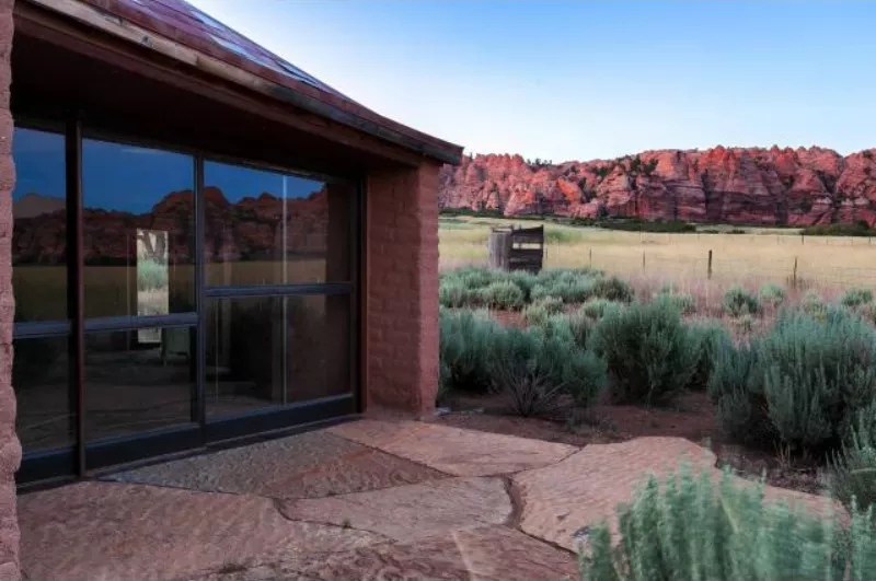 The Anasazi Indians who first inhabited Cave Valley would appreciate this eco-friendly, off grid retreat, set on 16 acres, surrounded by serene and majestic views of Zion National Park. The five unique western buildings provide rare access to the park, including caves with ancient petroglyphs. The main house contains all the expected urban comforts and luxuries. The adobe house and straw bale house offer flexible options for guests. The artist’s studio is attached to the garage, and finally, an intimate writer’s cabin is nestled in the nearby oak grove. Each building is accented with artistic elements, even the doors. This unique property is ideal for special events, yoga retreats, or as a family gathering place.