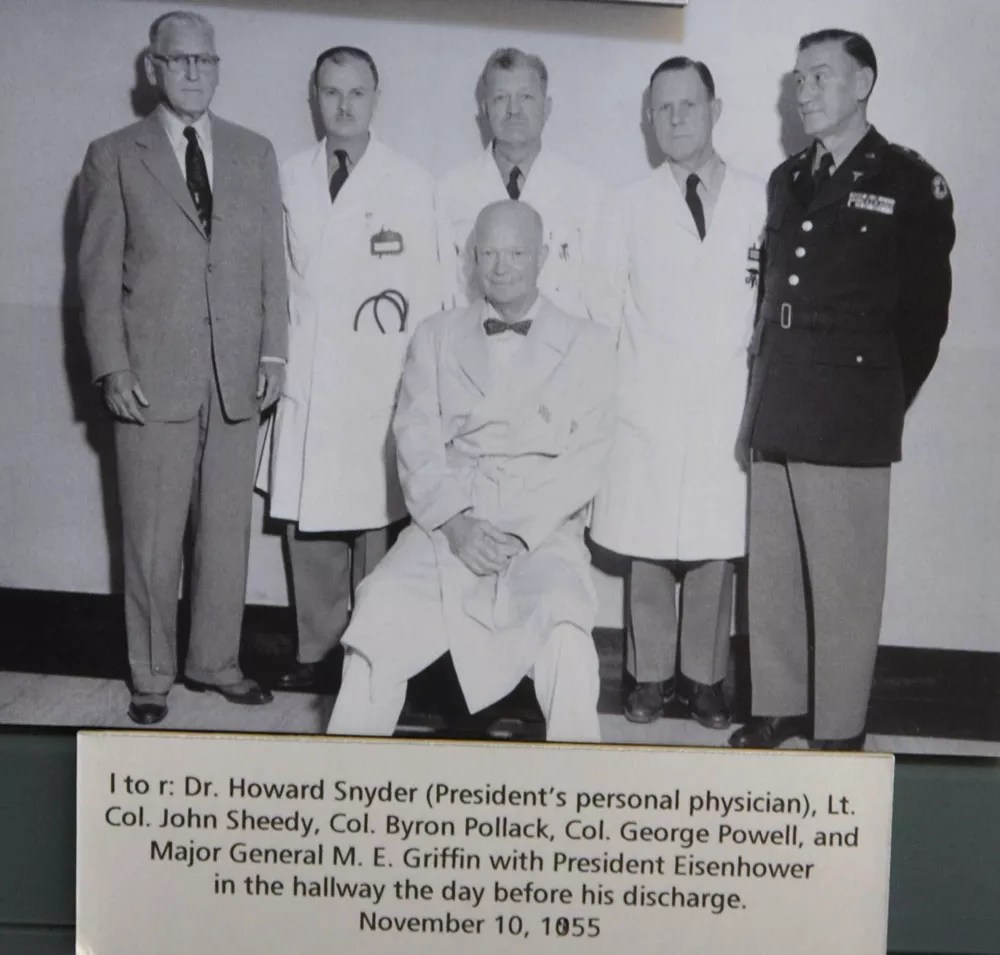 On September 23, 1955, the 64-year-old president, former Supreme Allied Commander in Europe (who had a four-cigarette-pack-a-day habit during WWII), was playing golf at Cherry Hills Country Club when he started complaining of indigestion, which he blamed on the hamburger with Bermuda onions he’d eaten for lunch. He went on to play 27 holes, then went to his mother-in-law’s house on Lafayette Street…where he suffered a heart attack.