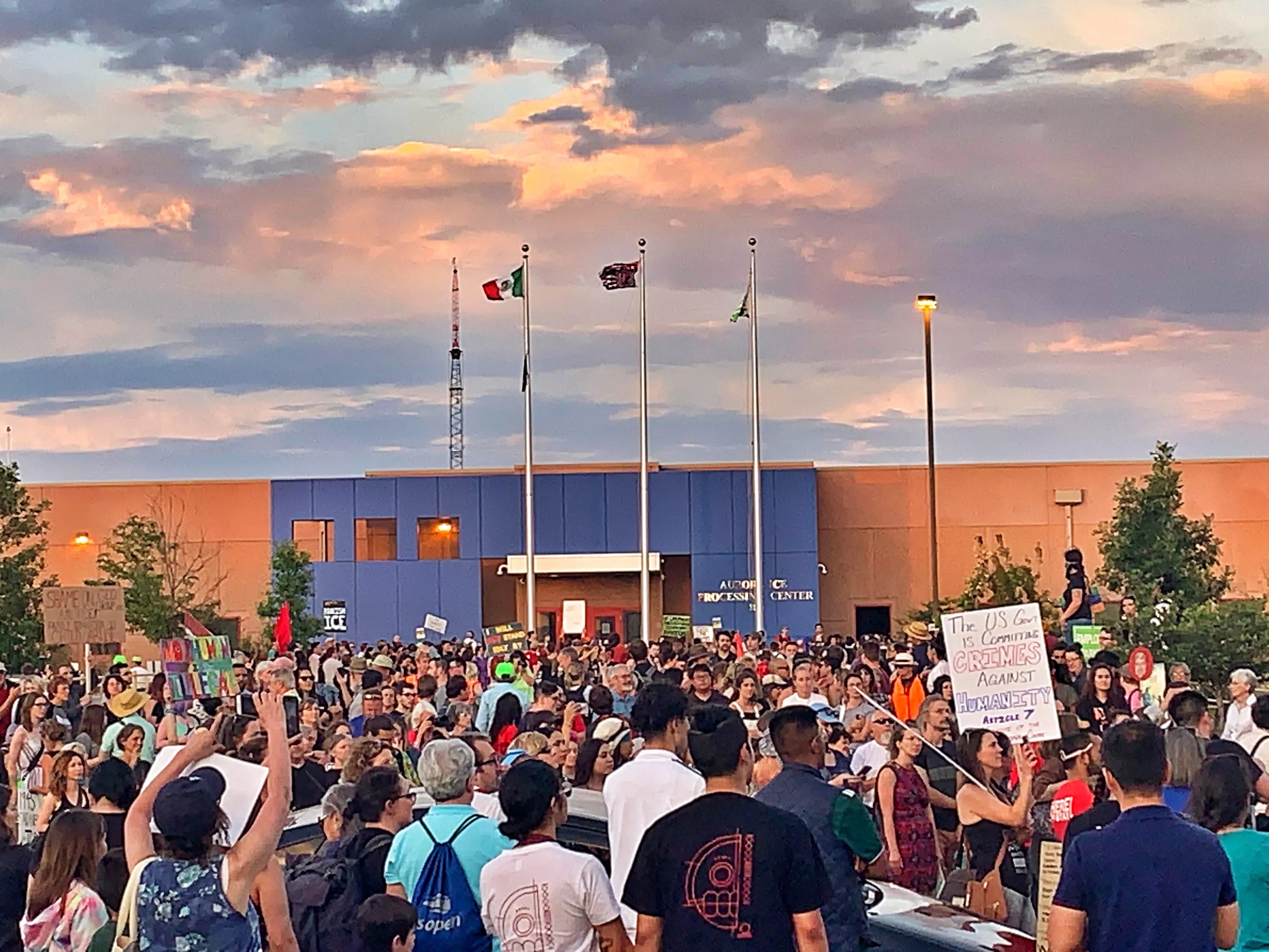 Between 1,000 and 2,000 protesters gathered outside of the immigrant detention center in Aurora on the evening of July 12, by far the largest protest outside of the facility in recent memory, according to activists.