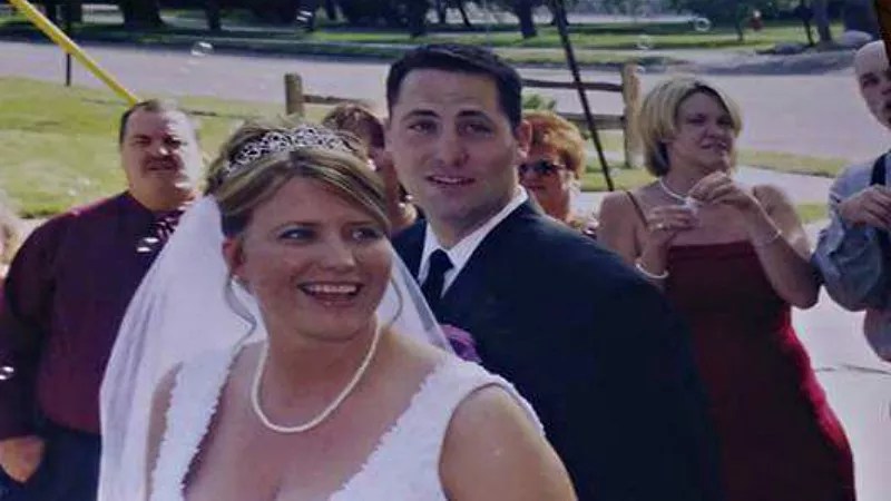 Erika and Adam Lee on August 9, 2003, their wedding day.