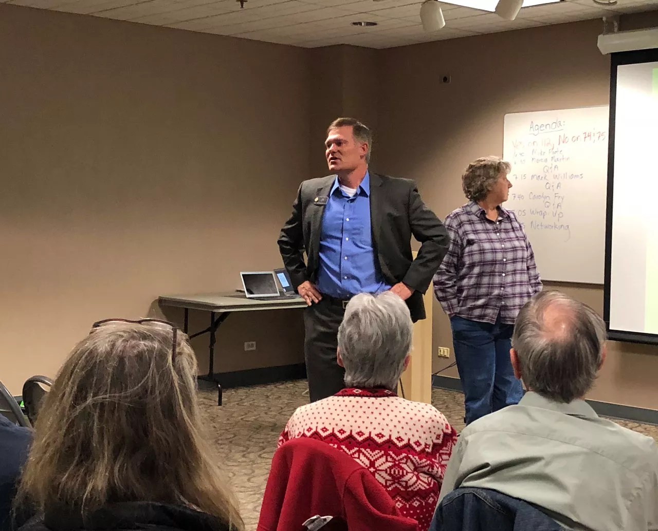 Legislator Mike Foote discusses Amendment 74 at a Longmont meeting.