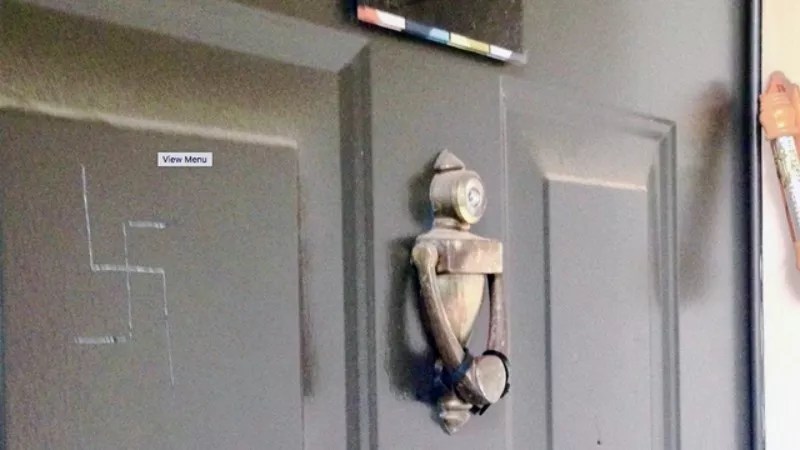 A swastika was scratched into the front door of a Jewish couple in Lafayette this past September.