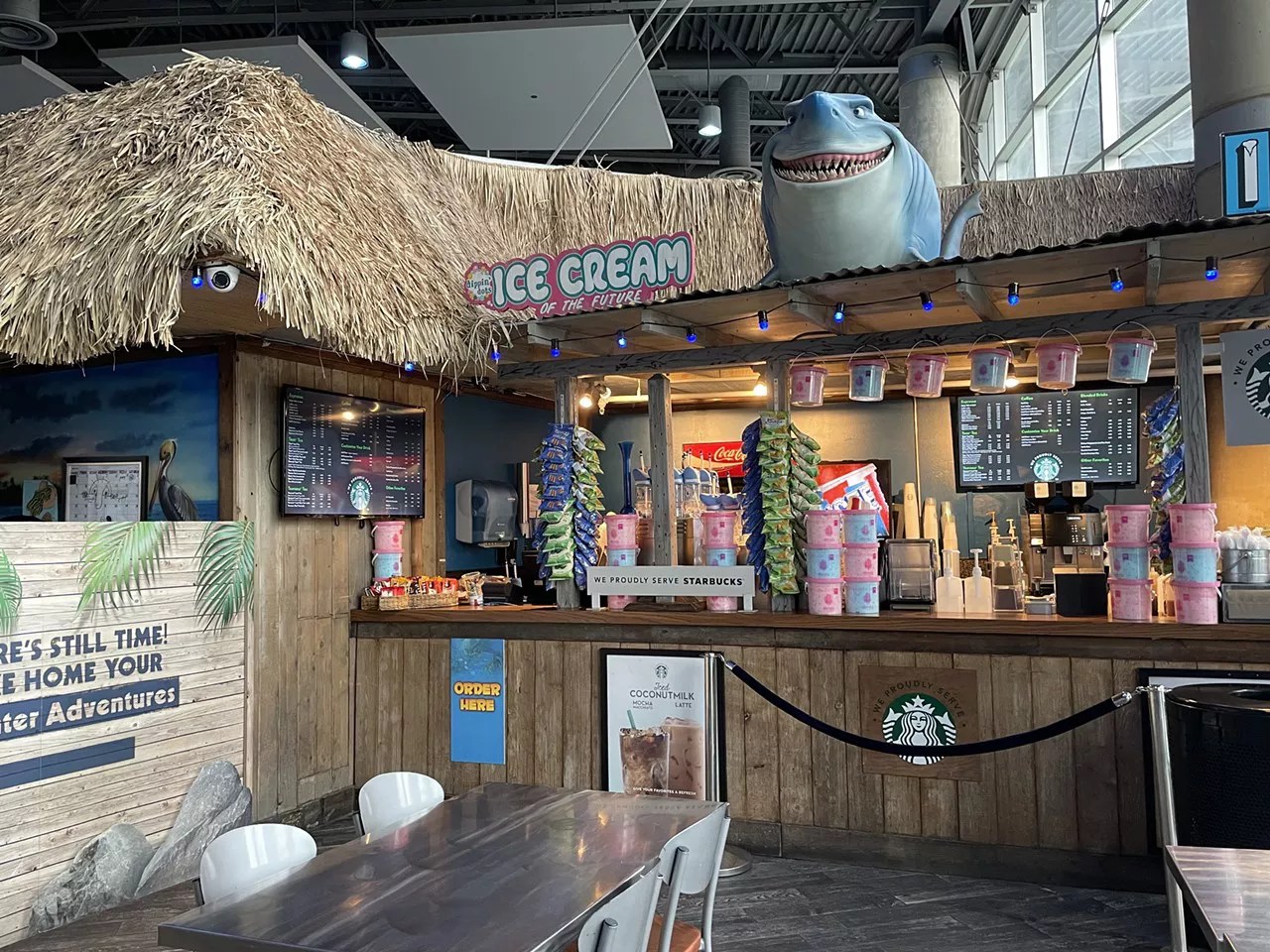 The Downtown Aquarium snack shack “proudly” sells Starbucks products.