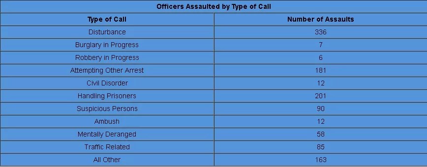 The types of call to which officers respond also factor into assaults.