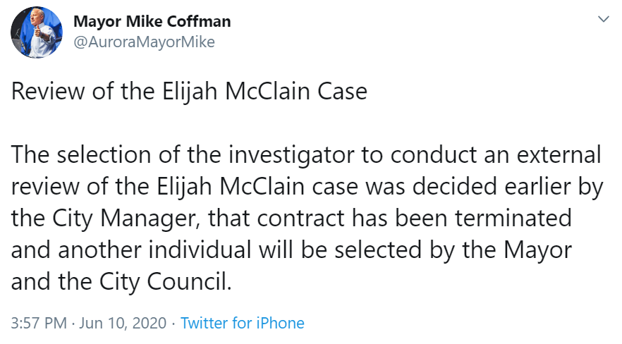 Editor’s note: Mayor Mike Coffman just announced that the city had cut ties with the investigator looking into Elijah McClain’s death. Keep reading for our original story, as well as an update.