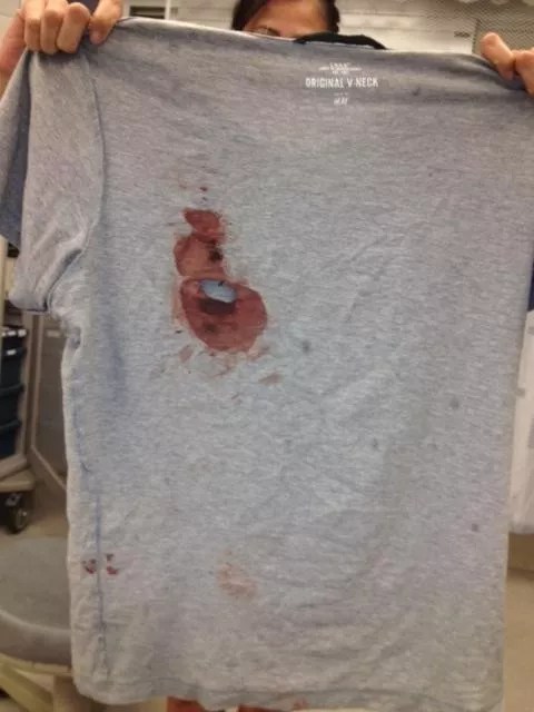 Photo: Young man shows off wounds he says he got at Aurora theater shooting