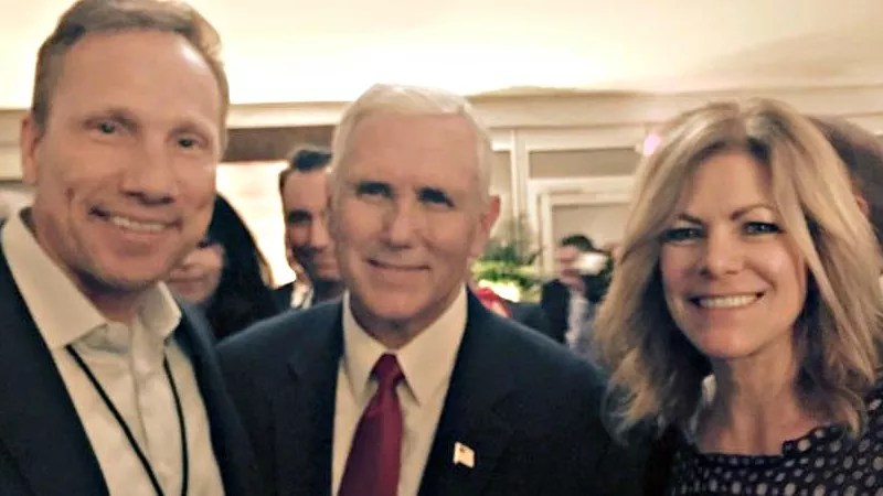 Barry and Tamra Farah pose alongside Vice President Mike Pence.