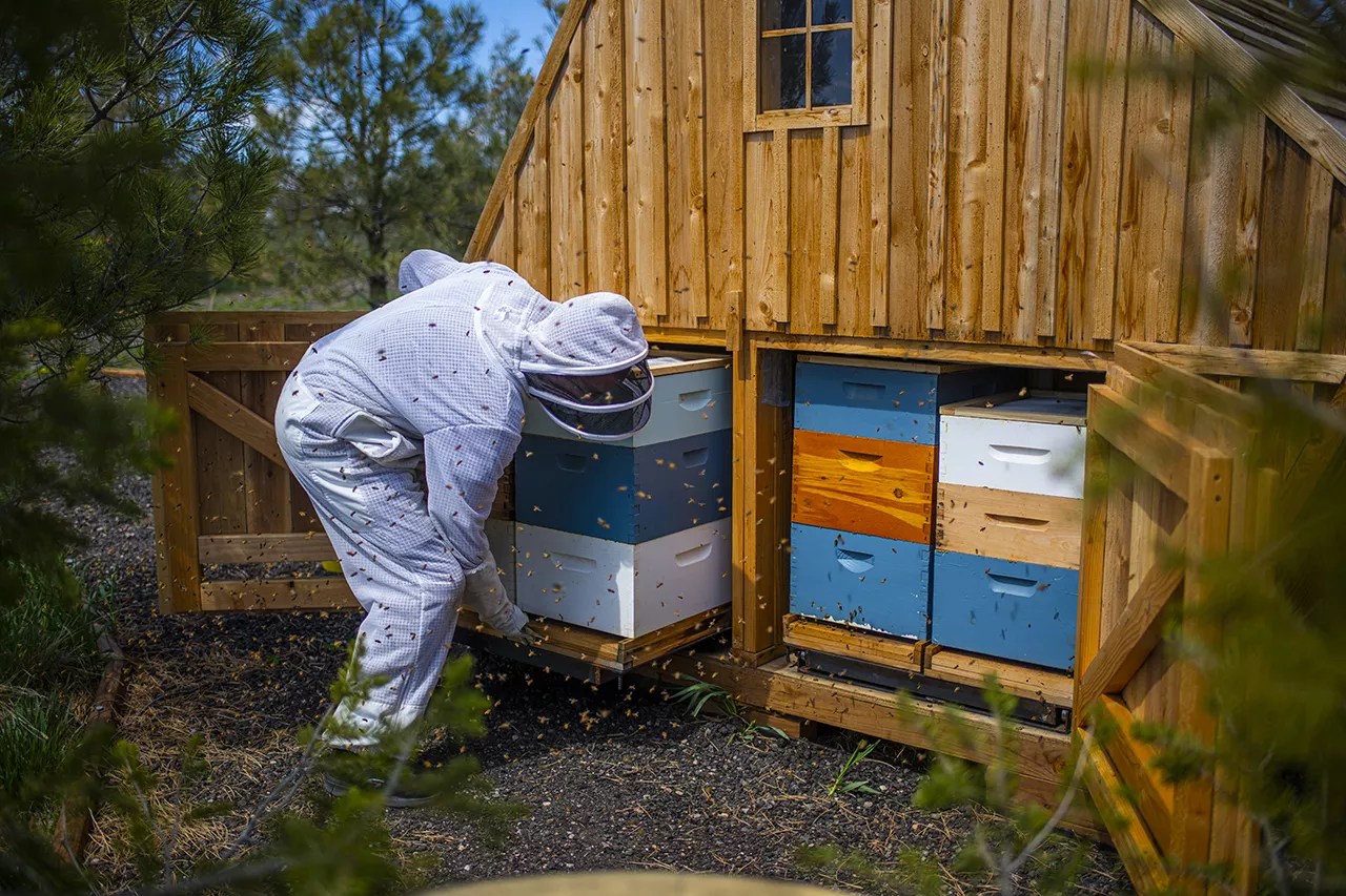 As she stepped into a bee hut at Capella Ranch, Kristen Yarmey smelled cedar along with a light, unfamiliar odor, and listened to the mesmerizing buzzes, taps and clicks the bees made as they performed their tasks in four hives underneath the pentagon-shaped hut.