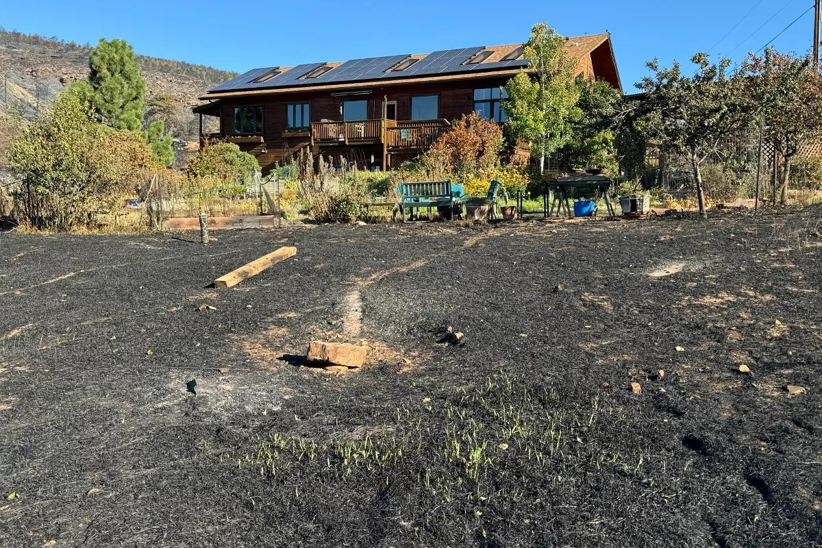 Similarly, Matre says that when she returned to her property, “the house itself was surprisingly untouched,” but the area around it was charred. The fire damaged the house’s windows and utilities — including her water, septic and electrical systems — and it burned down her garden and a barn. But considering the damage around the house, her home is still “amazingly intact,” she says.