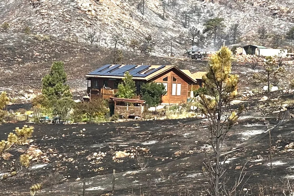 Firefighters from the town of Hygiene, which is next to Longmont, responded to the fire at Matre’s place after she evacuated. When they arrived, they started cutting down trees next to her house, sprayed water on and around her house and chucked wooden patio furniture and fire wood away from the home. “Putting all those things together, I think that’s why the house survived,” she says.