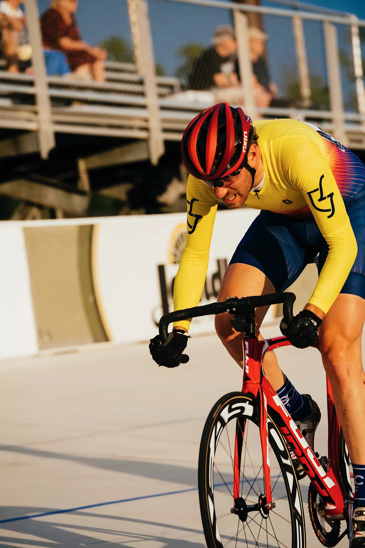 Andrew Bernstein racing at the Valley Preferred Cycling Center in Trexlertown, Pennsylvania, in June 2019.