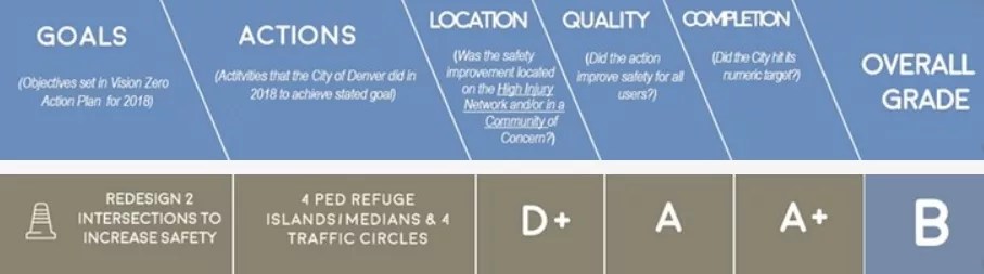“Vision Zero is a very strong five-year plan with nearly seventy action items. It’s not just building infrastructure, which we’re focused on, but also enforcement and culture change and doing a better job of recording data and using it in informed decision-making. And it’s got very strong, measurable benchmarks the city needs to hit in order to get to the goal of zero traffic fatalities. That’s why we used the plan as a benchmark for our report card, and why we gave the grades we did.”