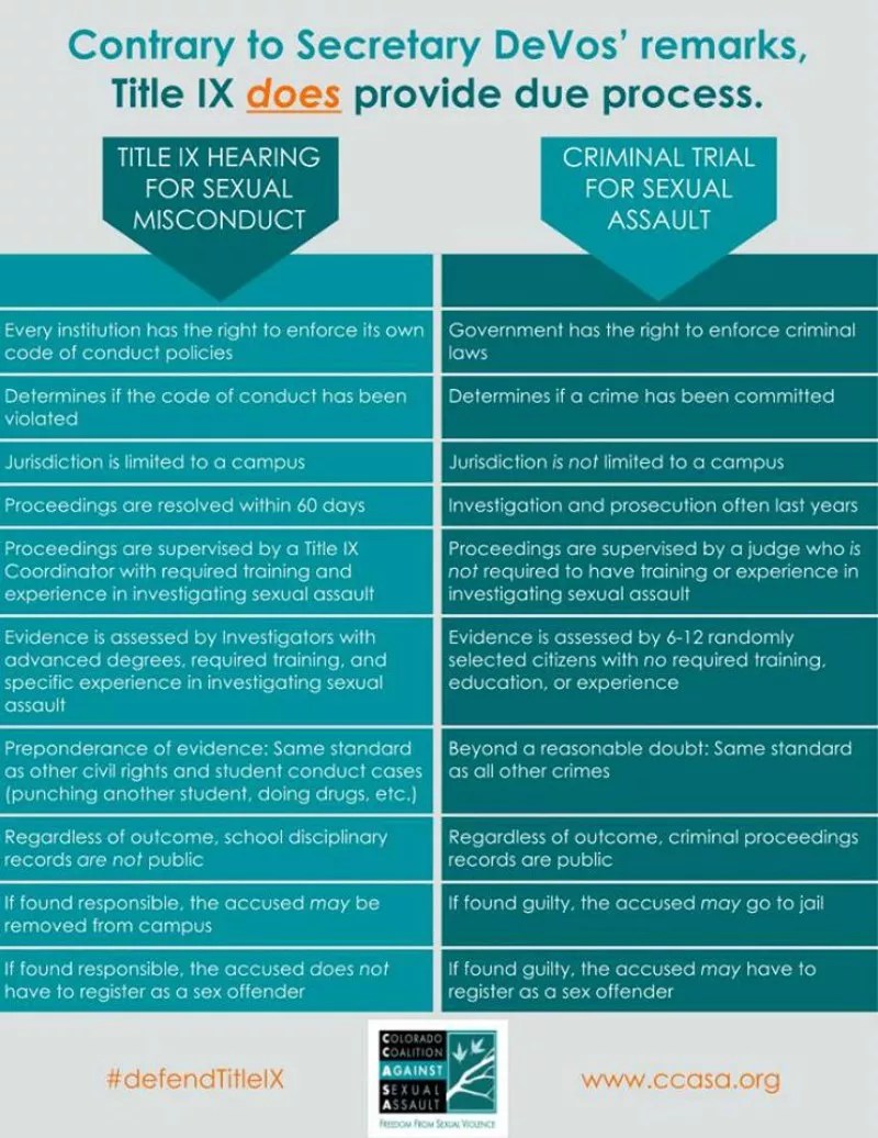 Other arguments along due-process lines are sketched out in the following graphic assembled by the Colorado Coalition Against Sexual Assault: