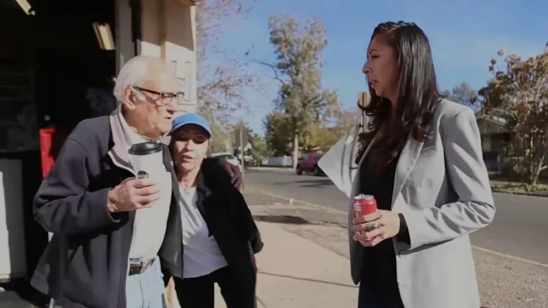 Candi CdeBaca talking with constituents, as seen in one of her campaign videos.