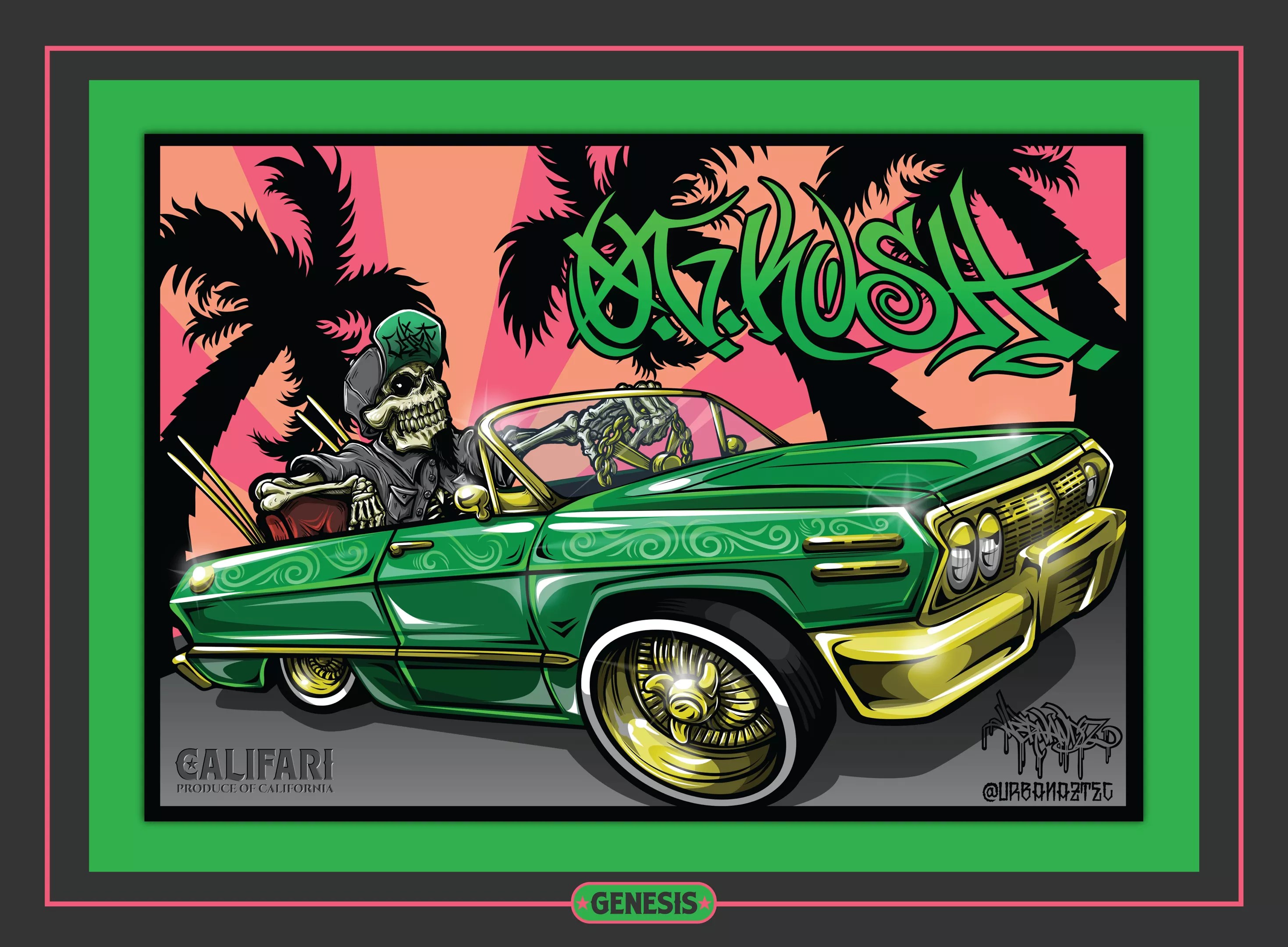 I worked on the Primus & the Chocolate Factory tour before launching Califari. During shows, they’d offer an original poster every night. And they’d always sell out, and there were these long lines for these posters that were incredible and usually screen-printed that made an impression on me as we were launching Califari. I thought there should be that kind of art existing for cannabis strains, because I find that people have similar emotional connections for their favorite cannabis strains as they do for their favorite musical artists. So we kind of tapped some shoulders and launched that art line in 2016.