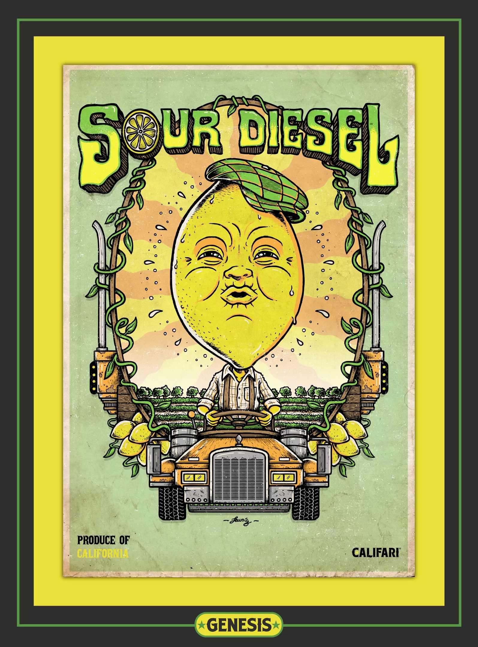I worked on the Primus & the Chocolate Factory tour before launching Califari. During shows, they’d offer an original poster every night. And they’d always sell out, and there were these long lines for these posters that were incredible and usually screen-printed that made an impression on me as we were launching Califari. I thought there should be that kind of art existing for cannabis strains, because I find that people have similar emotional connections for their favorite cannabis strains as they do for their favorite musical artists. So we kind of tapped some shoulders and launched that art line in 2016.