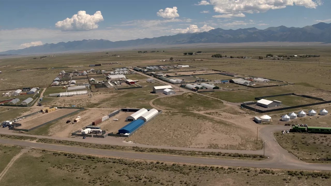 Biggio is sitting in his office inside a bright-green railroad car, one of several old train cars that have been repurposed as the headquarters for Area 420, the company developing a complex of marijuana farms at Moffat’s back door. The cars are an odd sight, but no odder than the rest of Phase One, a hundred-acre spread of greenhouses, shipping containers, RVs and porta-potties, construction equipment, grain bins being converted into housing, labs, security cameras, and fences covered in green mesh, accessed by gravel roads with winky-wink names like Mary Jane Lane, Dunn Deal Drive and Shakedown Street. Surrounded by high desert and flanked by the Sangre de Cristo range, the place has an otherworldly, improvisational feel to it, as if an alien invasion force had set up camp amid the saltgrass and greasewood.