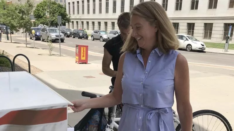 Cary Kennedy delivering her ballot.