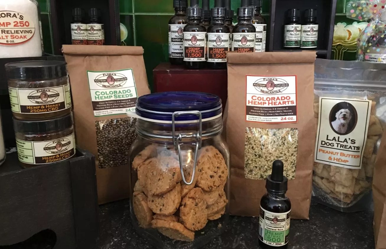 Chris Bedrosian, owner of Flora’s Mercantile & Hemp Emporium, says that her store’s three products for dogs (CBD-infused treats and two tinctures) have been popular with wholesalers during the pandemic; those retailers recognize the number of quarantiners who decided to foster or adopt pets during their time at home.