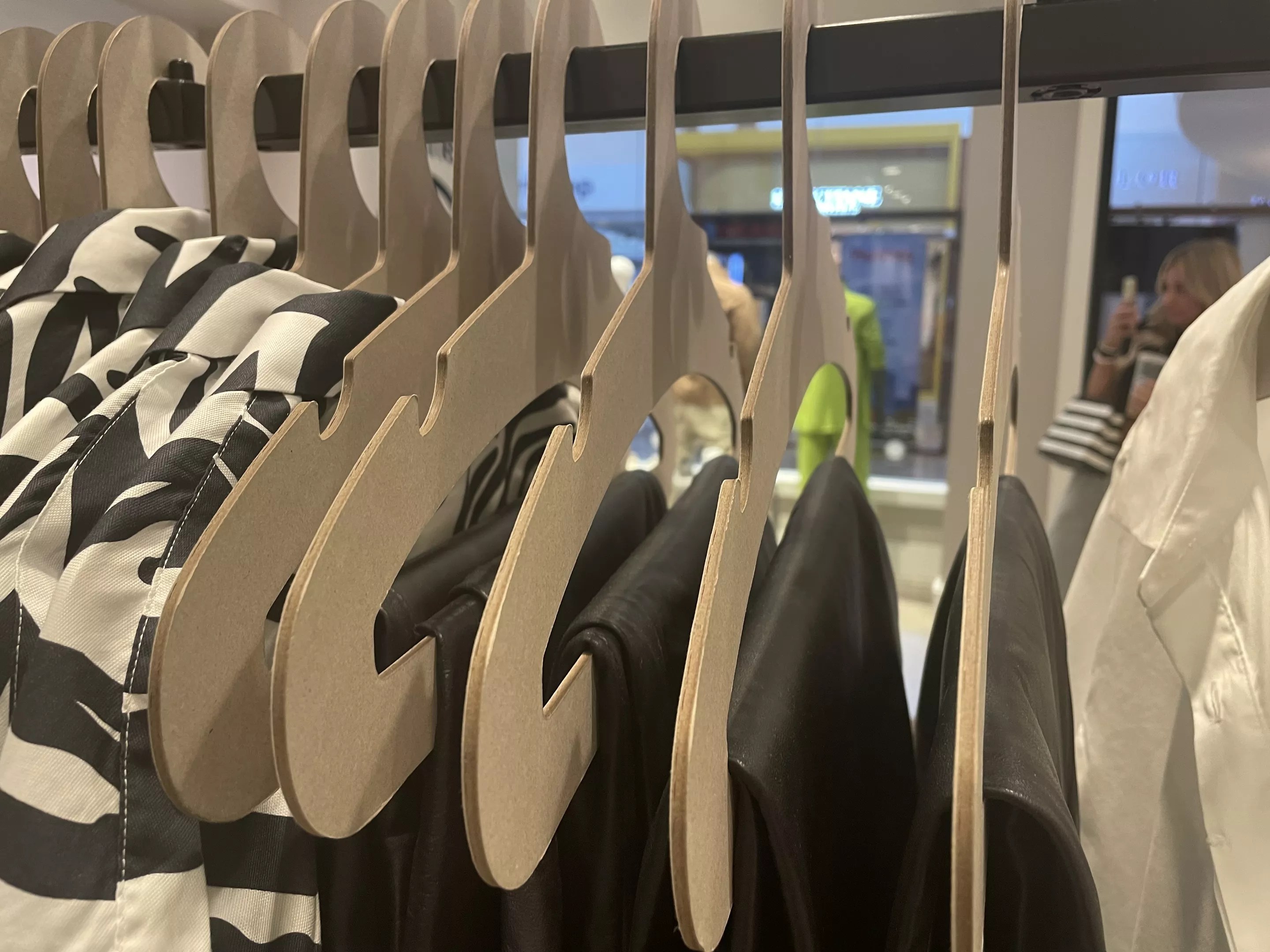 The House of LR&C is a certified B corporation, which means it’s been deemed environmentally and socially responsible by B-lab. “B Corp Certification is a designation that a business is meeting high standards of verified performance, accountability, and transparency on factors from employee benefits and charitable giving to supply chain practices and input materials,” according to the nonprofit B-lab’s website. For example, all of the hangers in the store are made of cardboard and take only six weeks to decompose. LR&C uses recycled cashmere, polyester, silk and organic cotton in its clothes, and works with the Leather Working Group, a company that focuses on “environmentally friendly” leather production. “They really take sustainability seriously,” says Antoinette Vincent, the store’s manager.