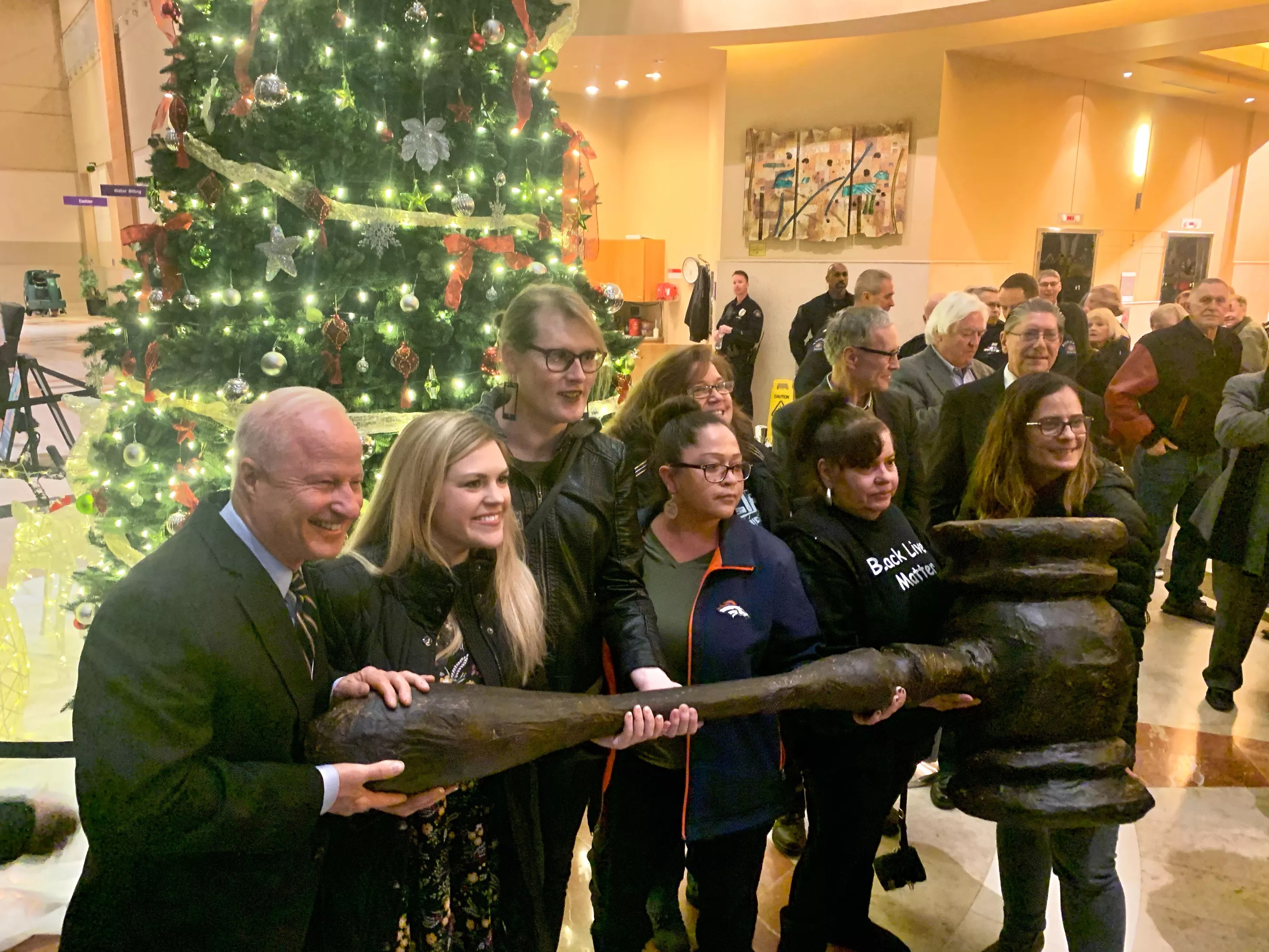 “Amazon’s wasn’t big enough,” the former Republican member of Congress told Westword about his new wooden toy just before the meeting started. “It’s more kind of like a mallet.”